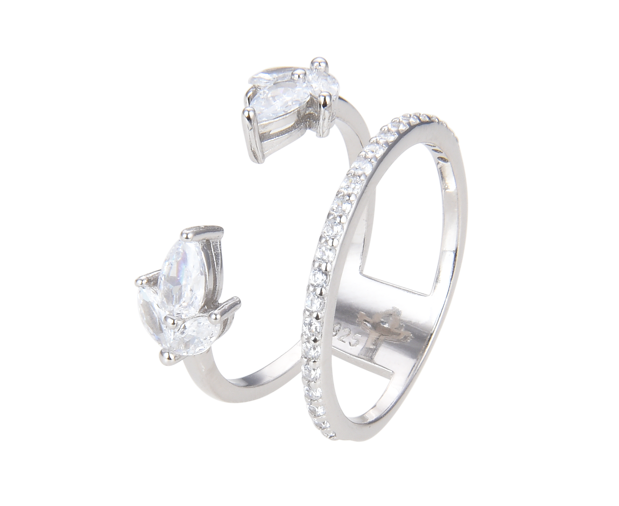 טבעת כפולה משובצת מכסף טוהר 925