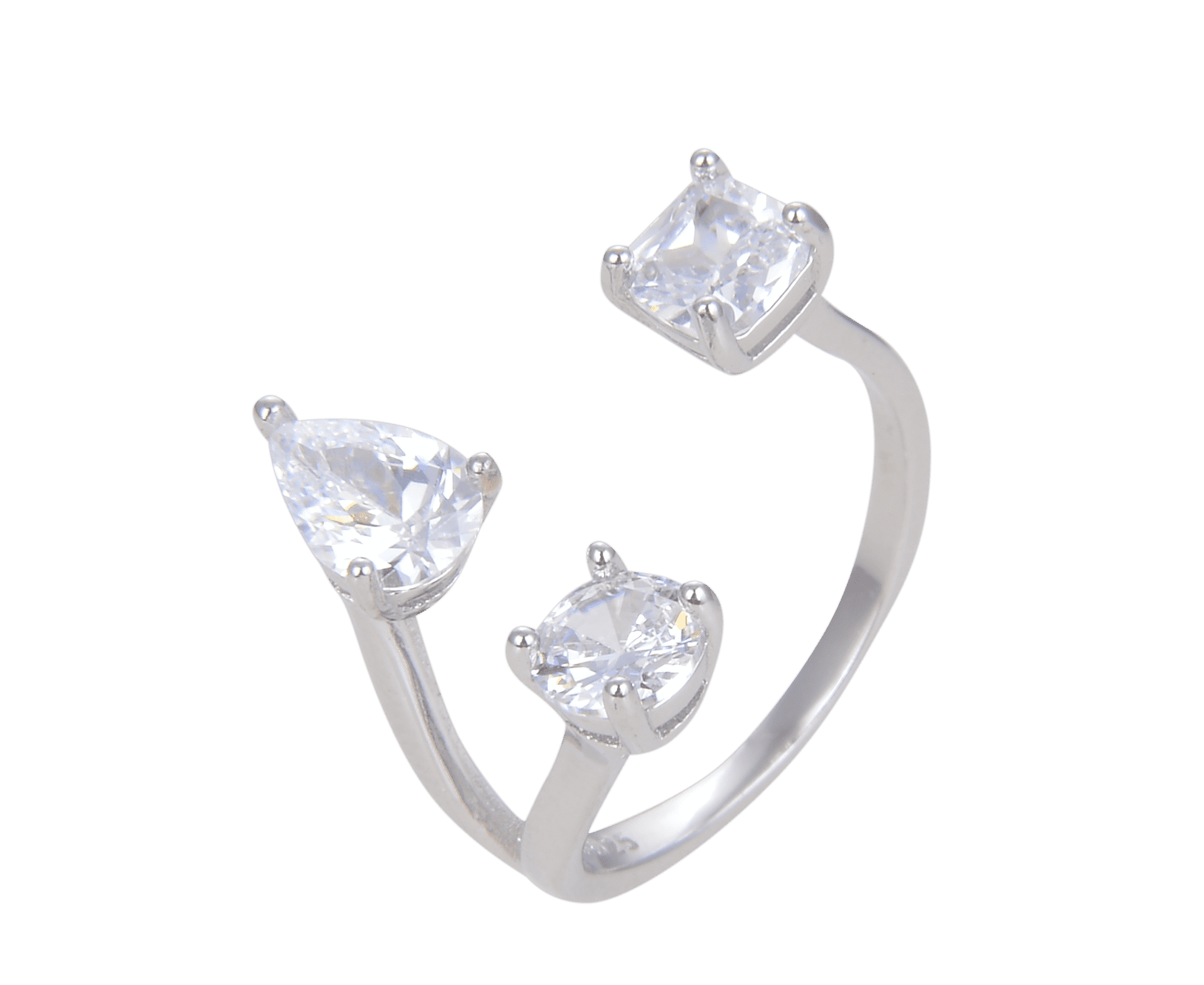 טבעת כסף פתוחה ריבוע טיפה ועיגול
