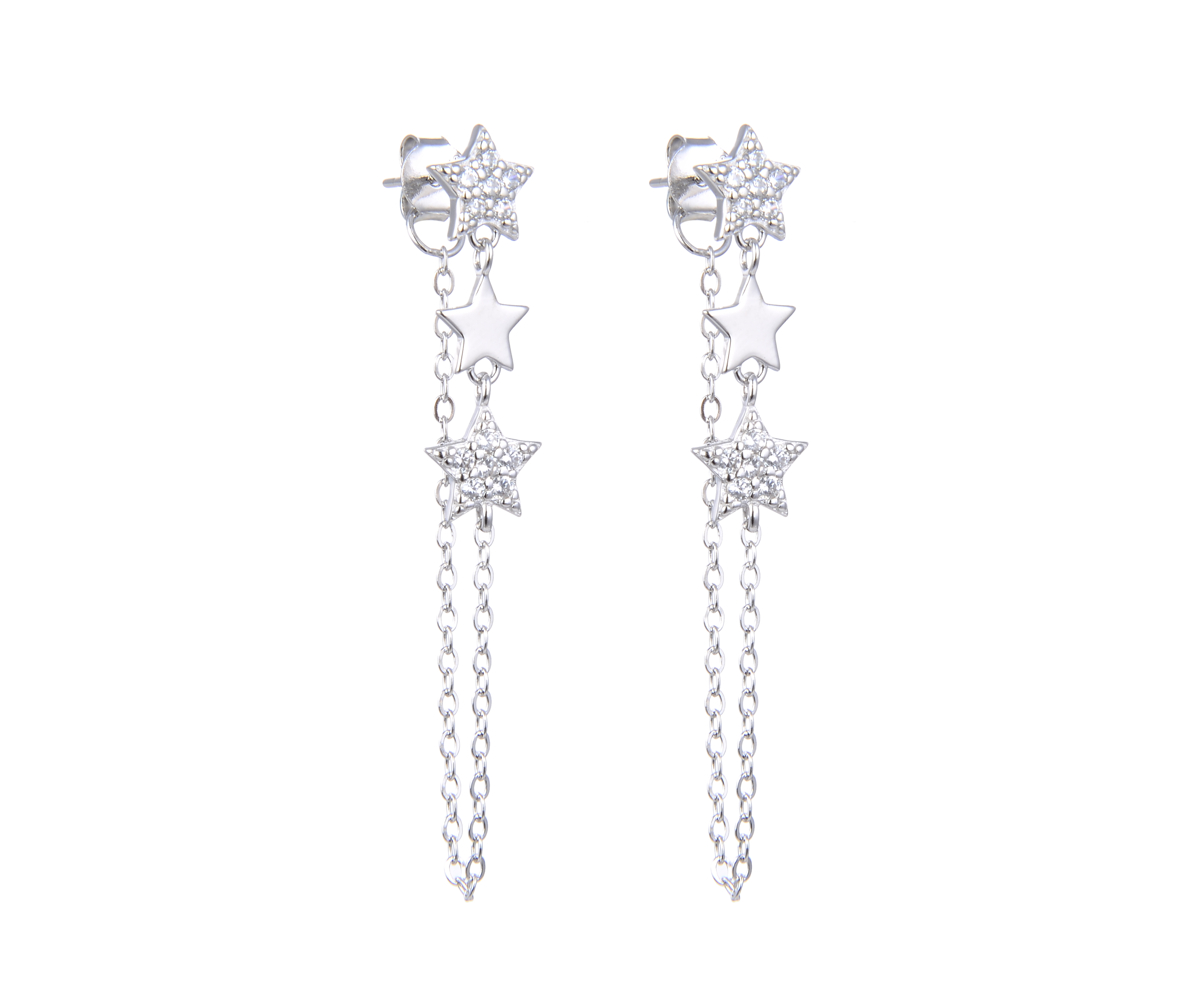 עגיל נופל 3 כוכבים 2 משובצים 1 חלק