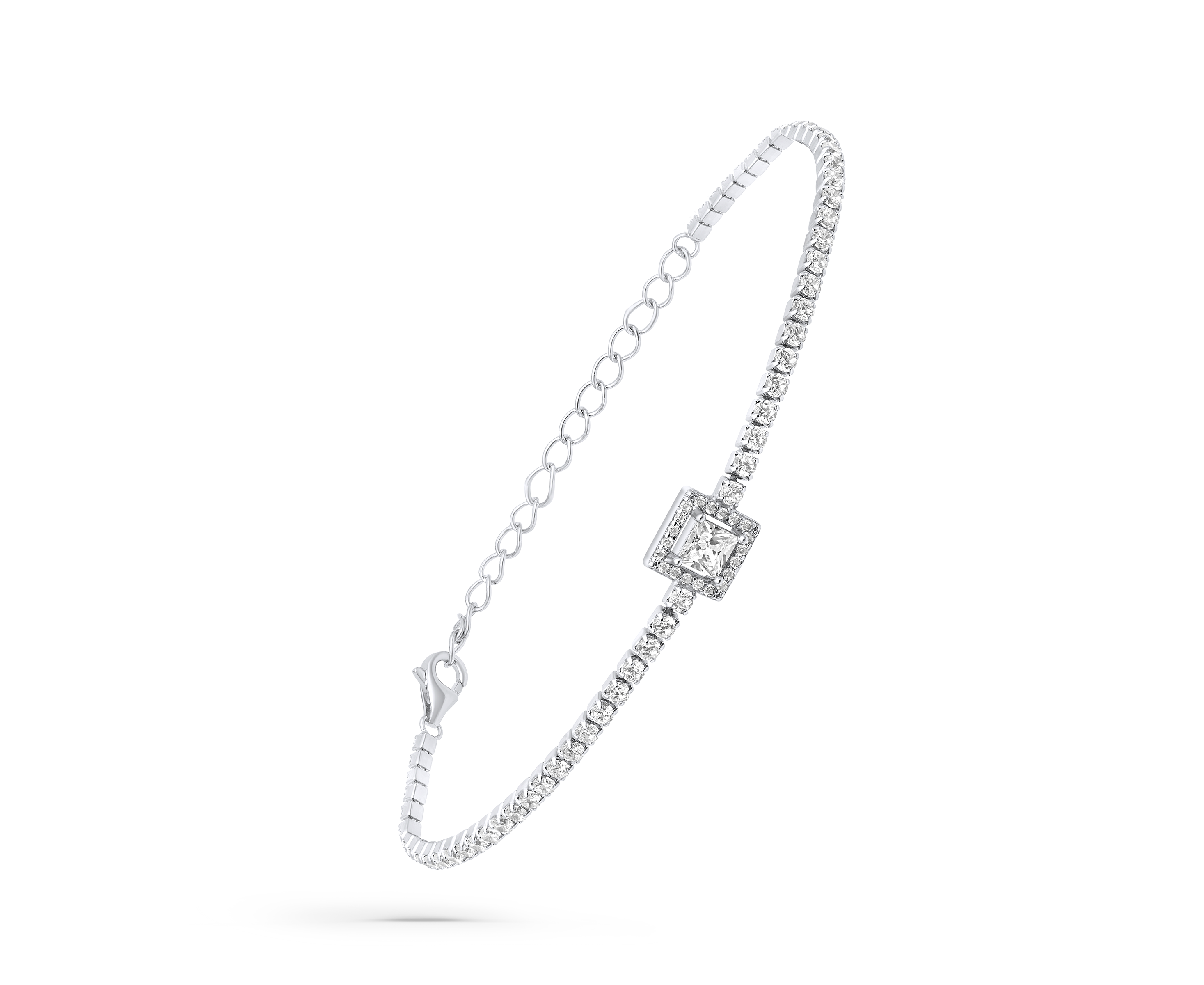 צמיד כסף שטראס מרובע עם שיבוץ מלא