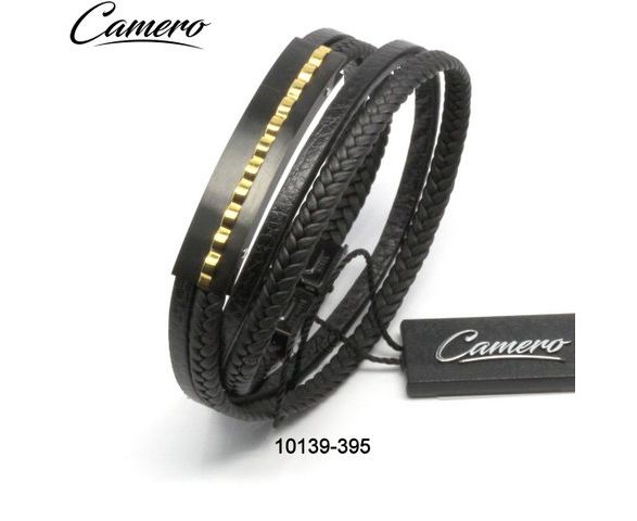 צמיד סטיל עור כפול פלטה מושחרת