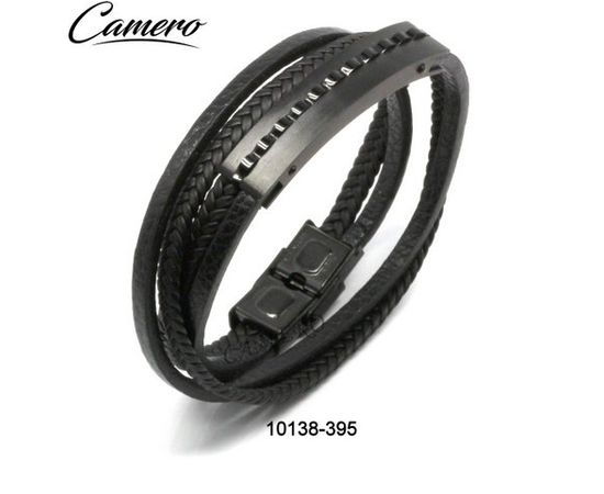 צמיד סטיל עור כפול פלטה מושחרת