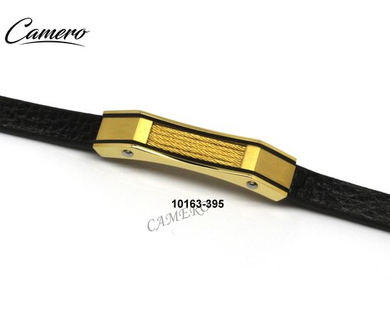 צמיד סטיל משולב עור ופלטה מוזהבת