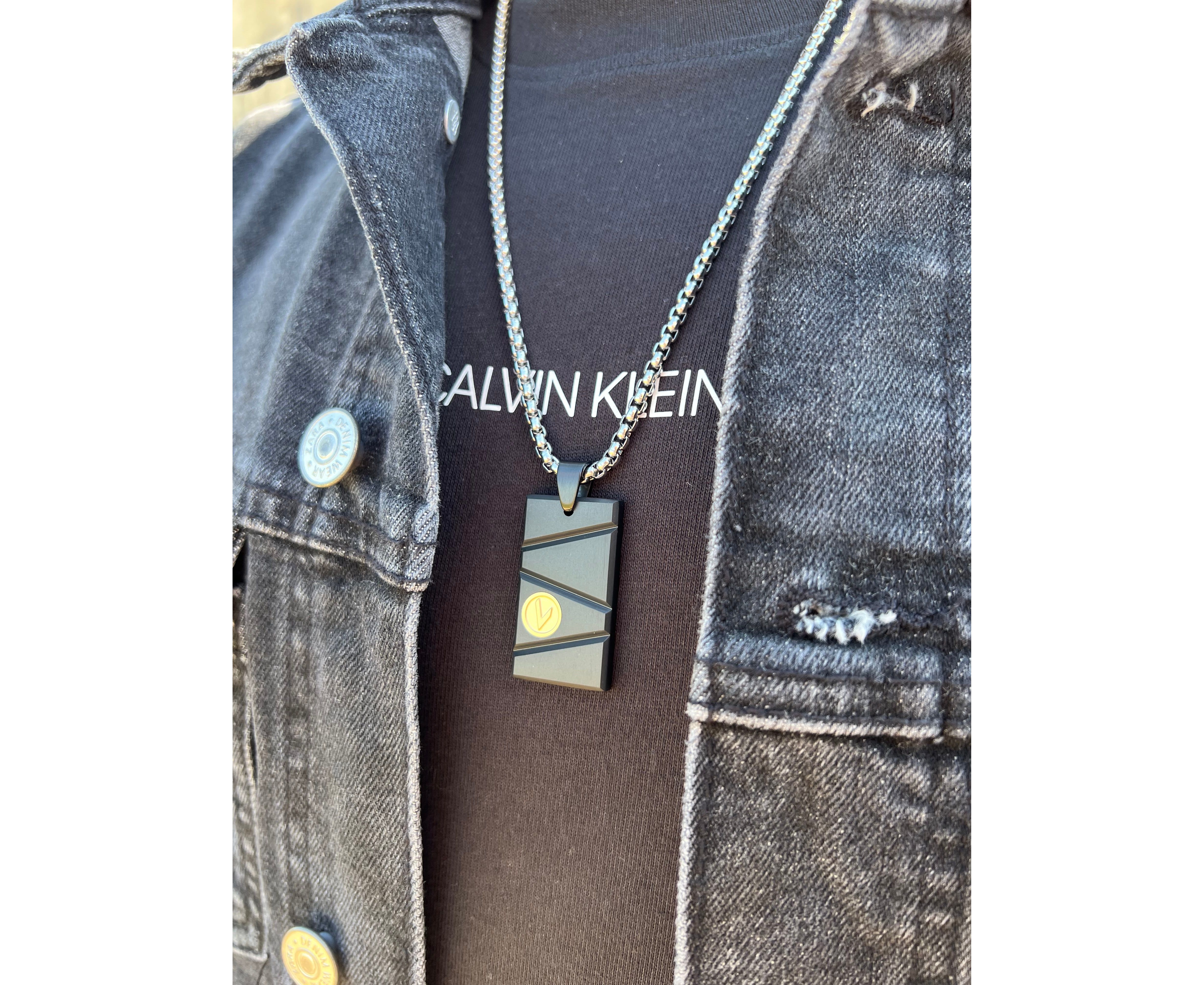שרשרת סטיל לפטה עם אלמנט בציפוי זהב 18k