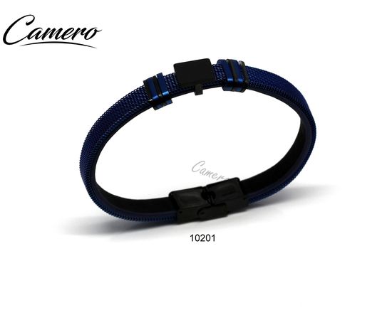 צמיד סטיל+עור כחול