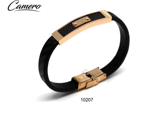 צמיד עור עם פלטה סטיל רוז גולד וקרבון