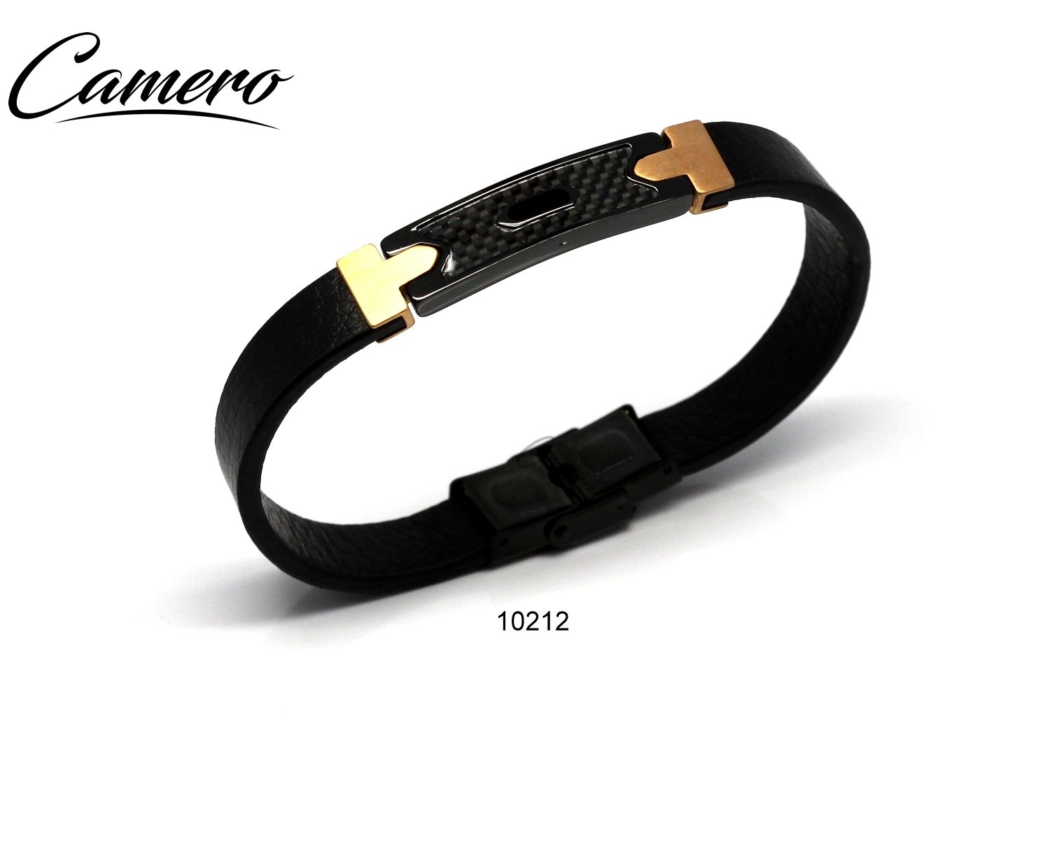 צמיד עור שחור עם פלטה סטיל רוז גולד וקרבון