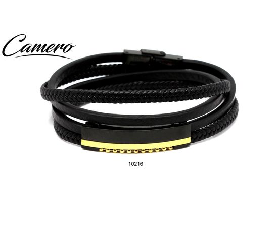 צמיד עור שחור עם פלטה סטיל