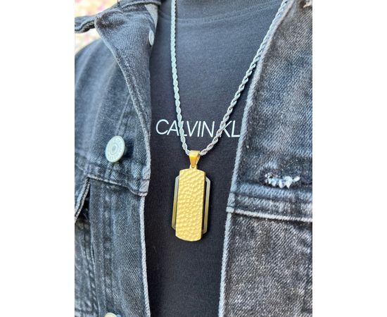 שרשרת חבל סטיל עם פלטה בציפוי זהב 18k