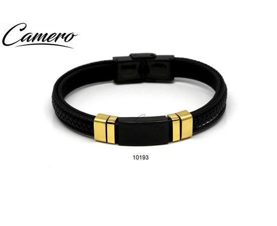 צמיד עור שחור עם כבל וסטיל