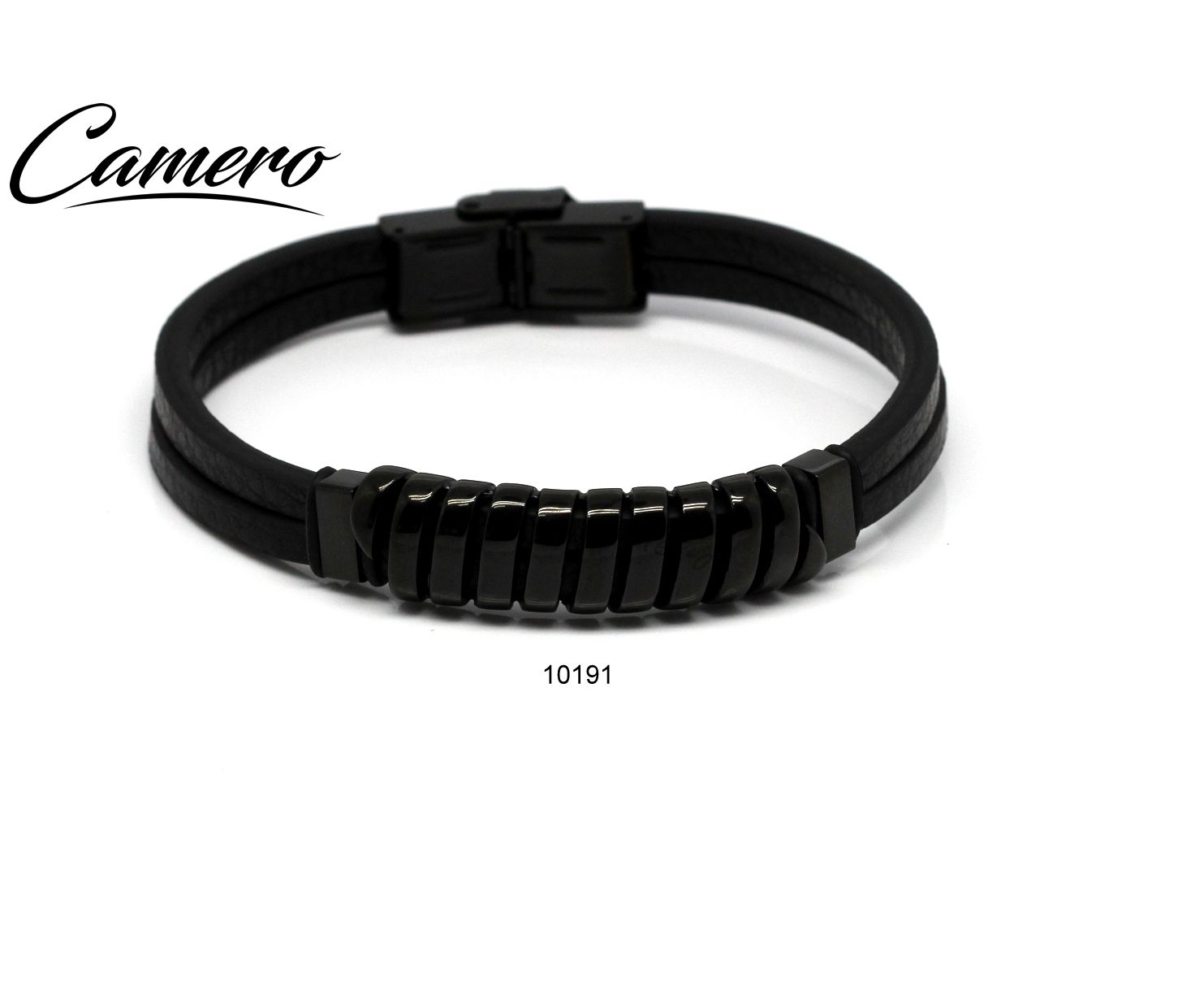 צמיד עור שחור עם פלטה סטיל