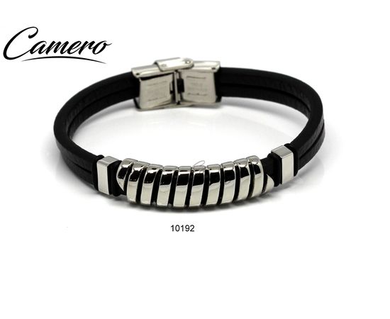 צמיד עור עם פלטה סטיל כסופה