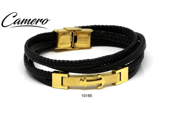 צמיד עור שחור עם פלטה סטיל ועוגן