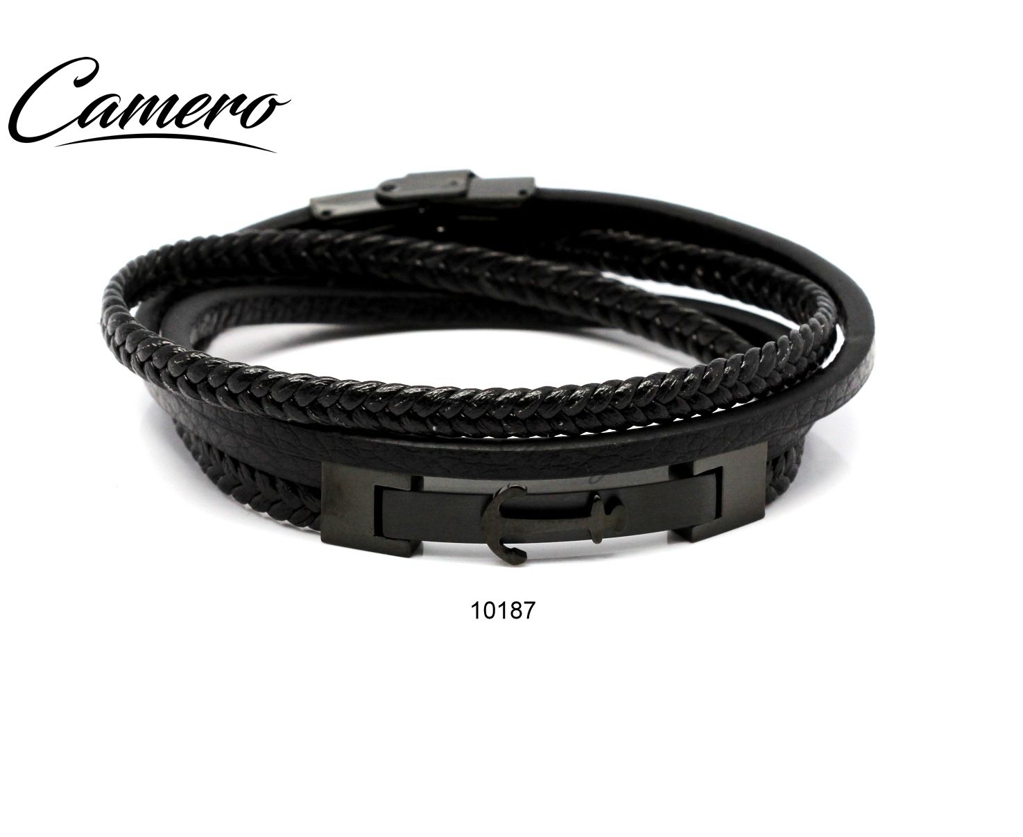 צמיד עור שחור עם פלטה סטיל ועוגן