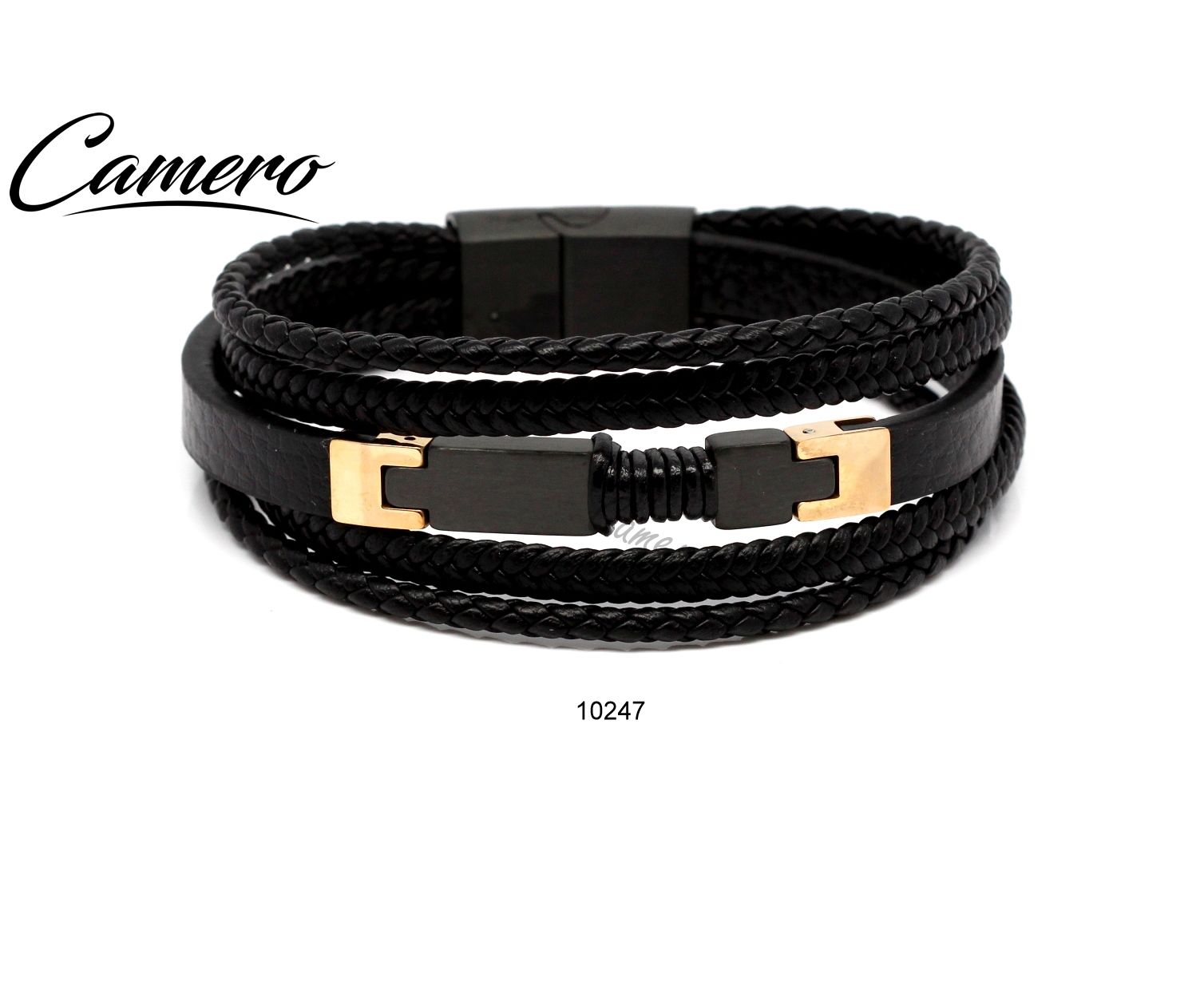 צמיד עור עם פלטה סטיל רוז גולד