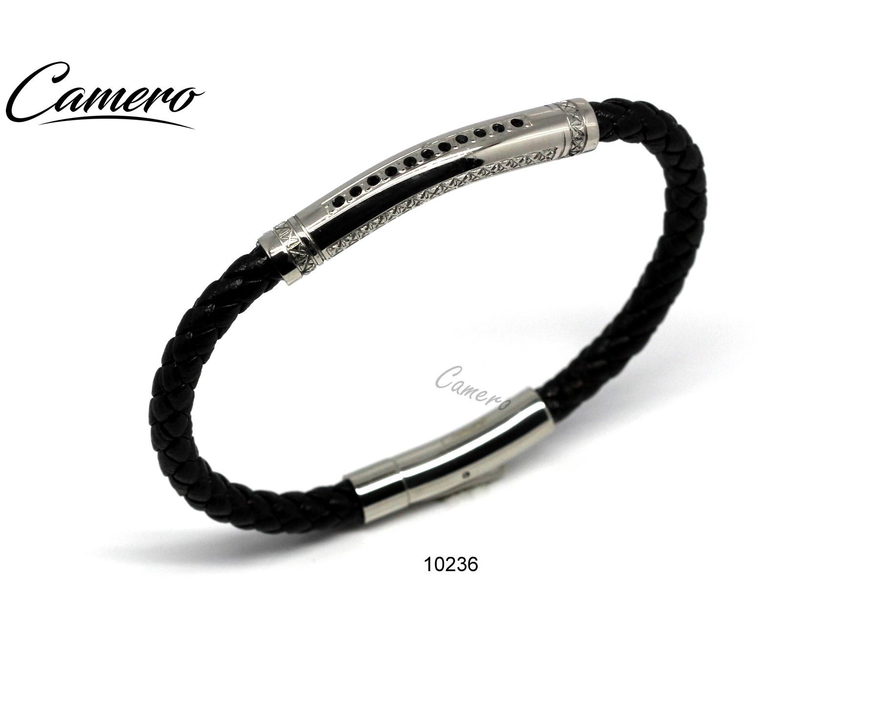 צמיד עור שחור עם סטיל כסוף ואבנים