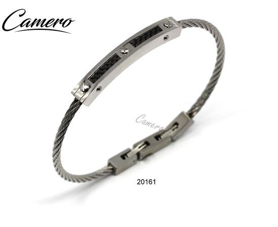 צמיד סטיל כבל כסוף עם קרבון