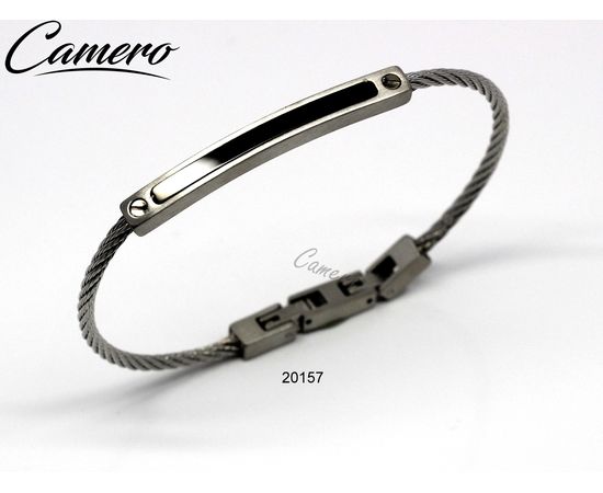 צמיד סטיל כבל כסוף עם פס שחור