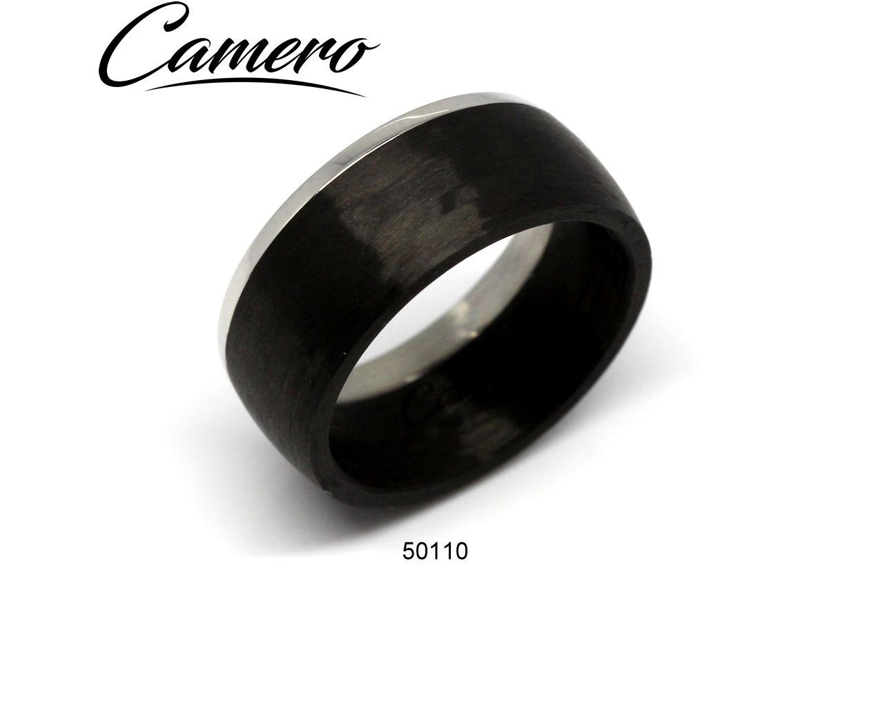 טבעת סטיל+קרבון שחורה עם פס כסף