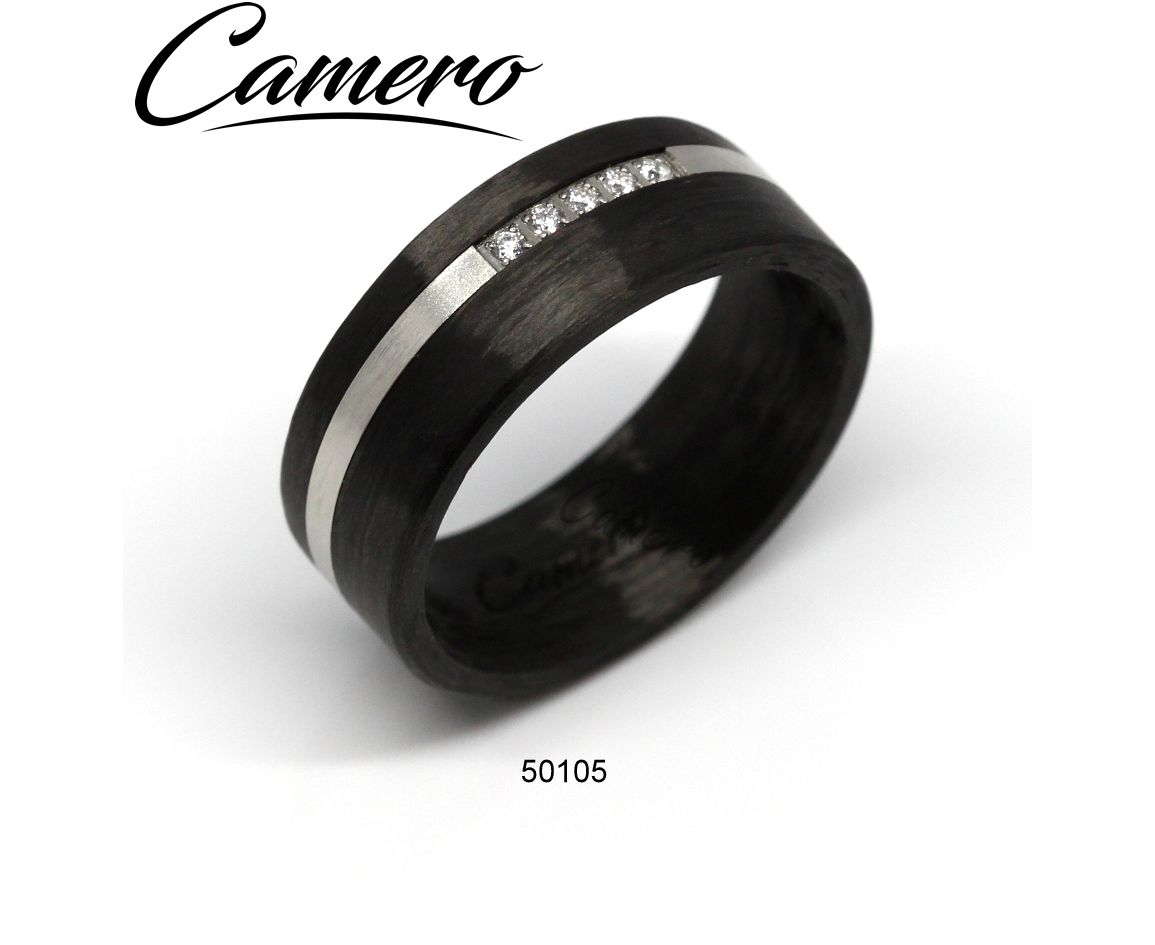 טבעת סטיל+קרבון עם 5 אבנים