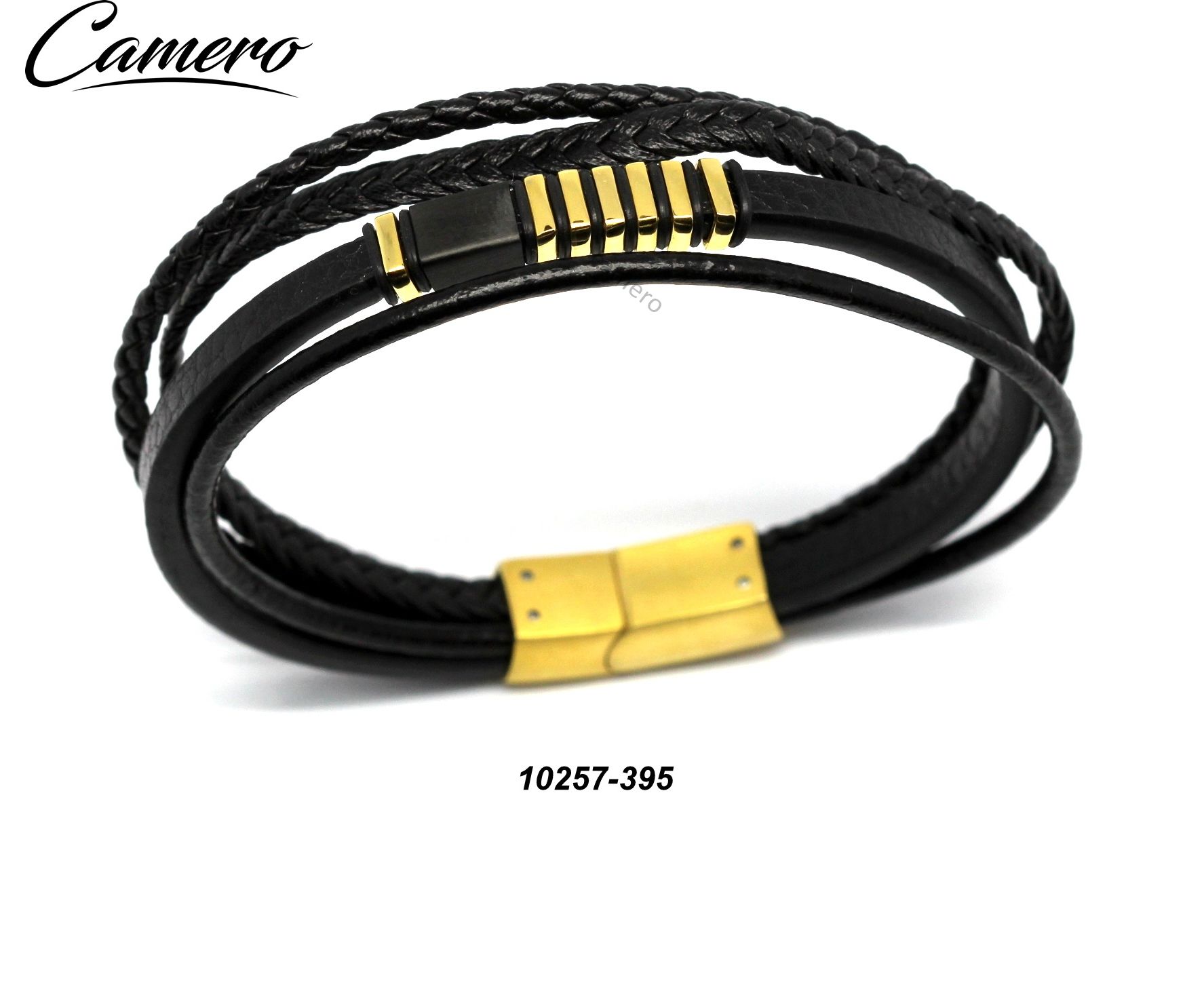 צמיד עור 4 פסים בצבע זהב+שחור