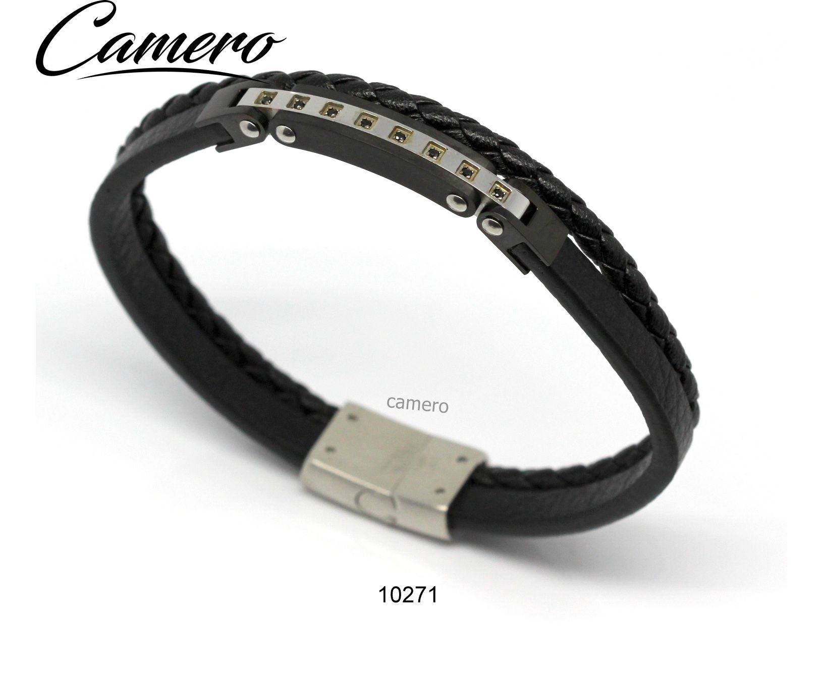 צמיד סטיל משולב עוד בצבע כסף ושחור עם 8 אבנים