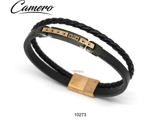צמיד סטים משולב עור בצבע שחור ורוז עם 8 אבנים