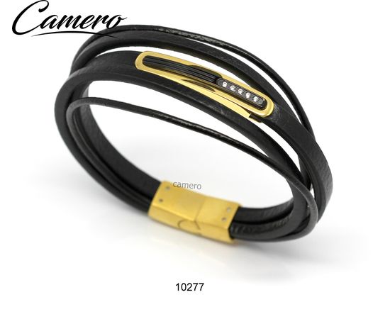 צמיד סטיל משולב עוד בצבע שחור וזהב עם 5 אבנים