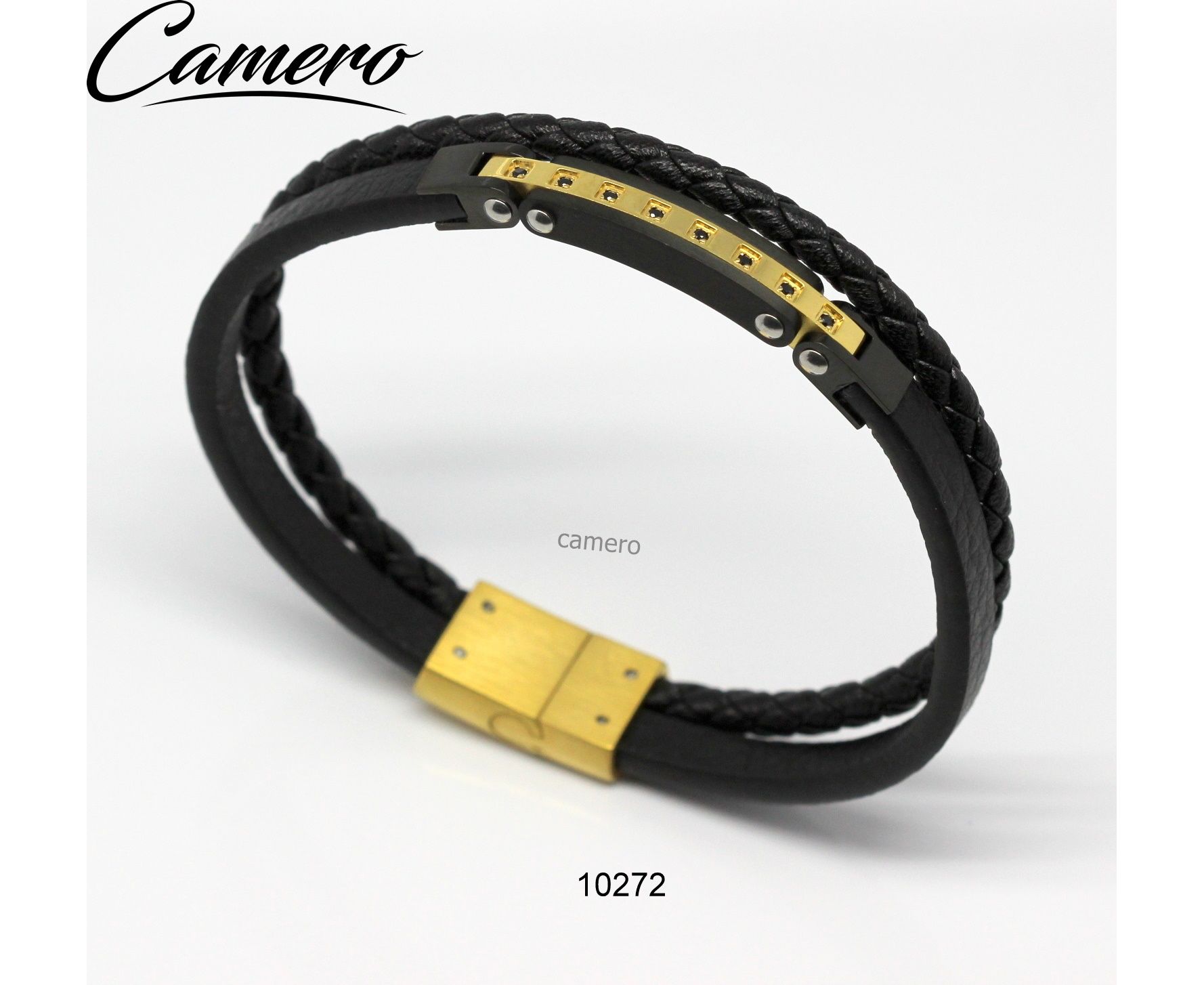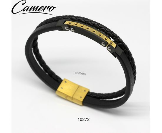 צמיד סטיל משולב עור בצבע שחור וזהב עם 8 אבנים