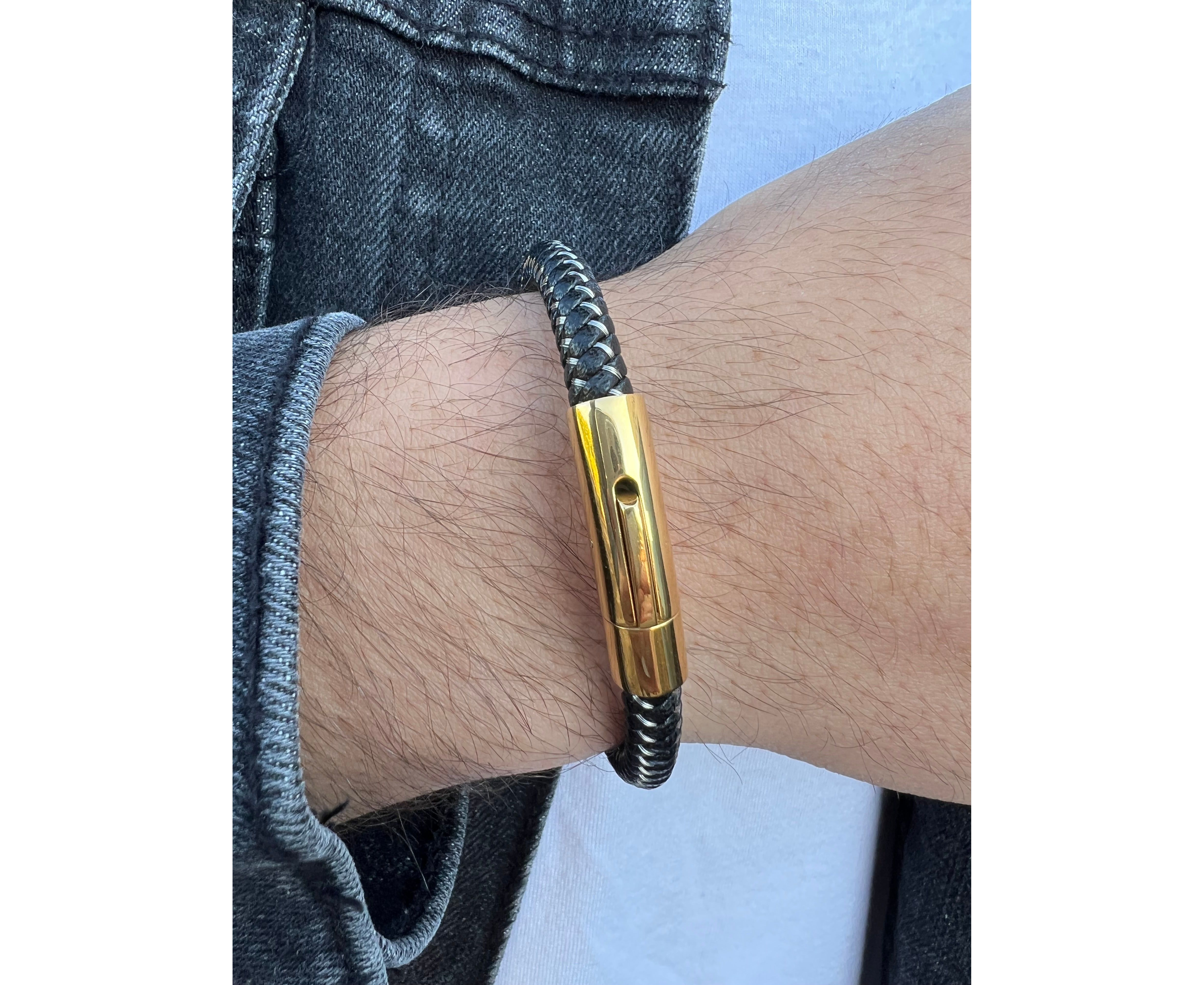 צמיד עור איכותי משולב ציפוי זהב 18k