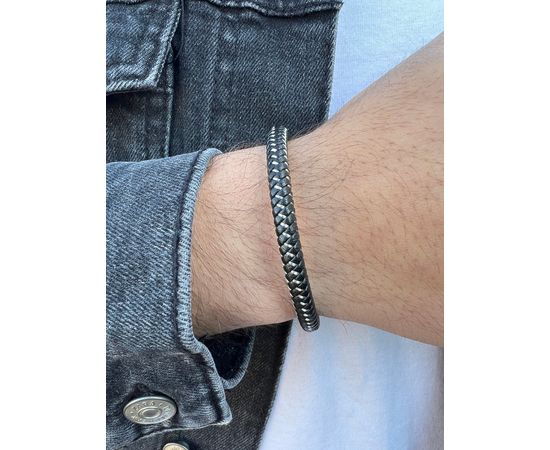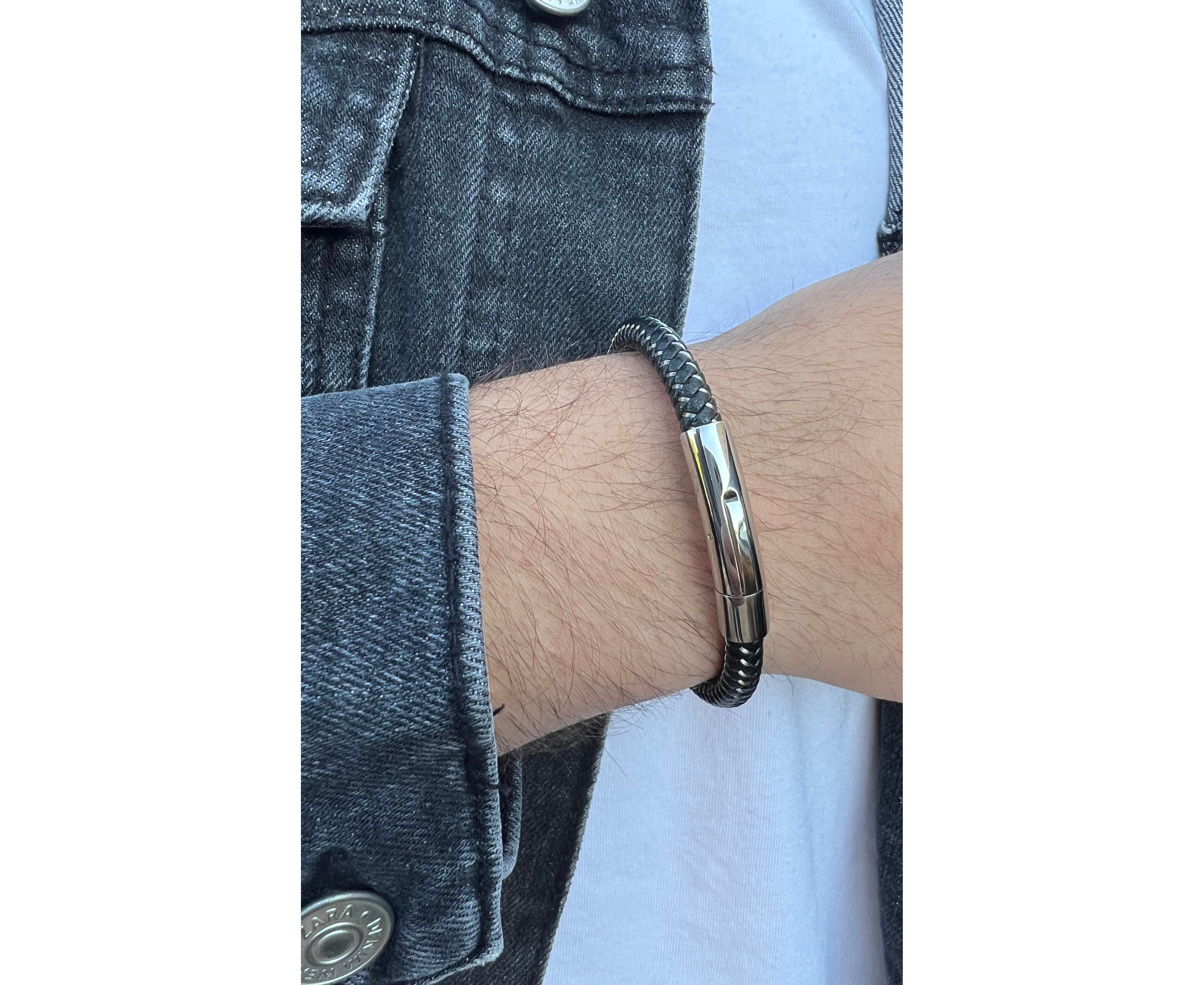 צמיד עור משולב פלדה לגבר