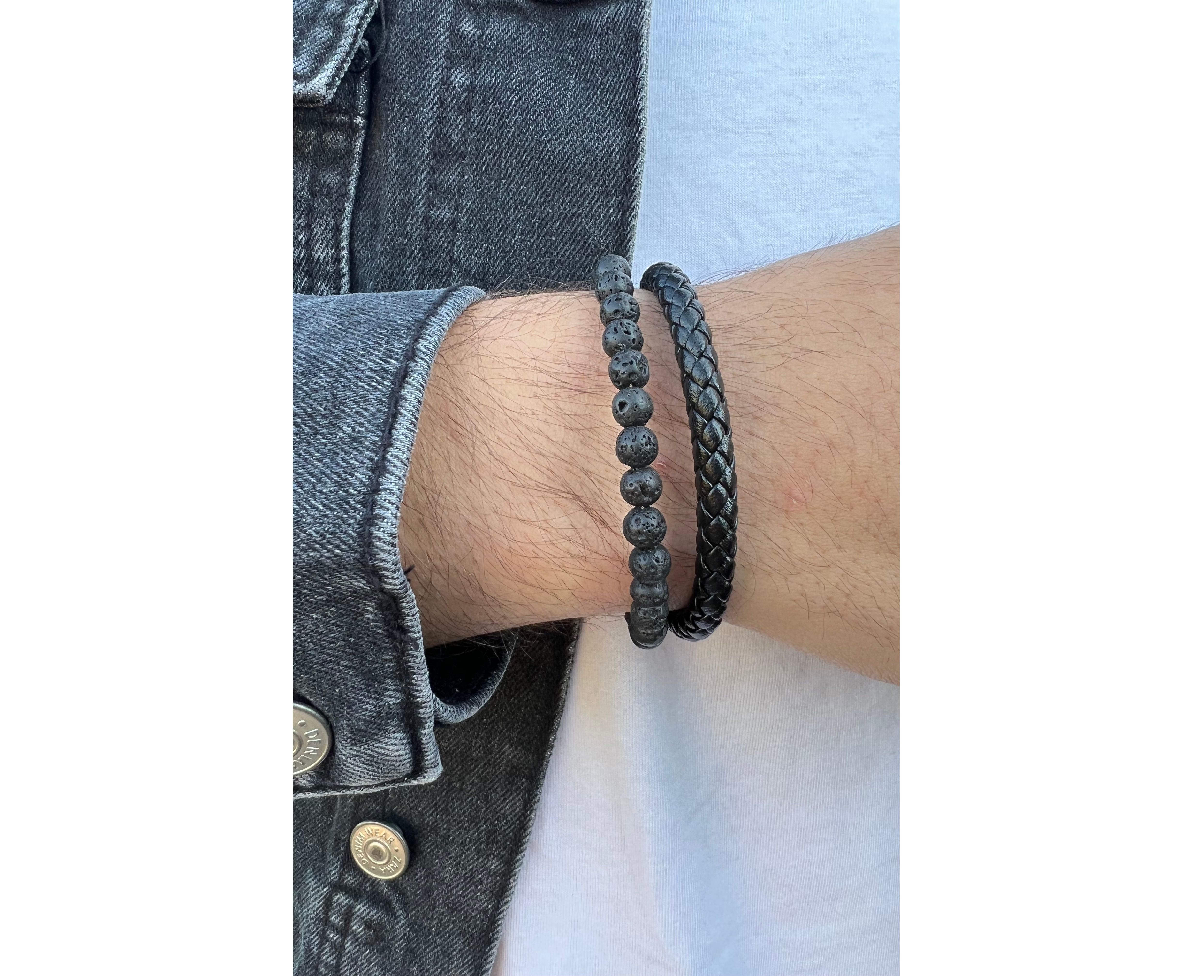צמיד עור משולב אבני לבה לגבר