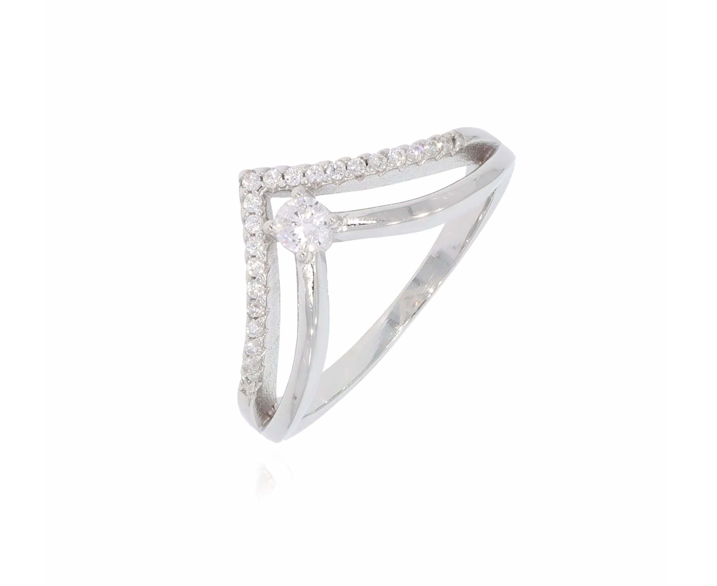 טבעת כסף 2 פסים עם זירקון מרכזי