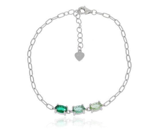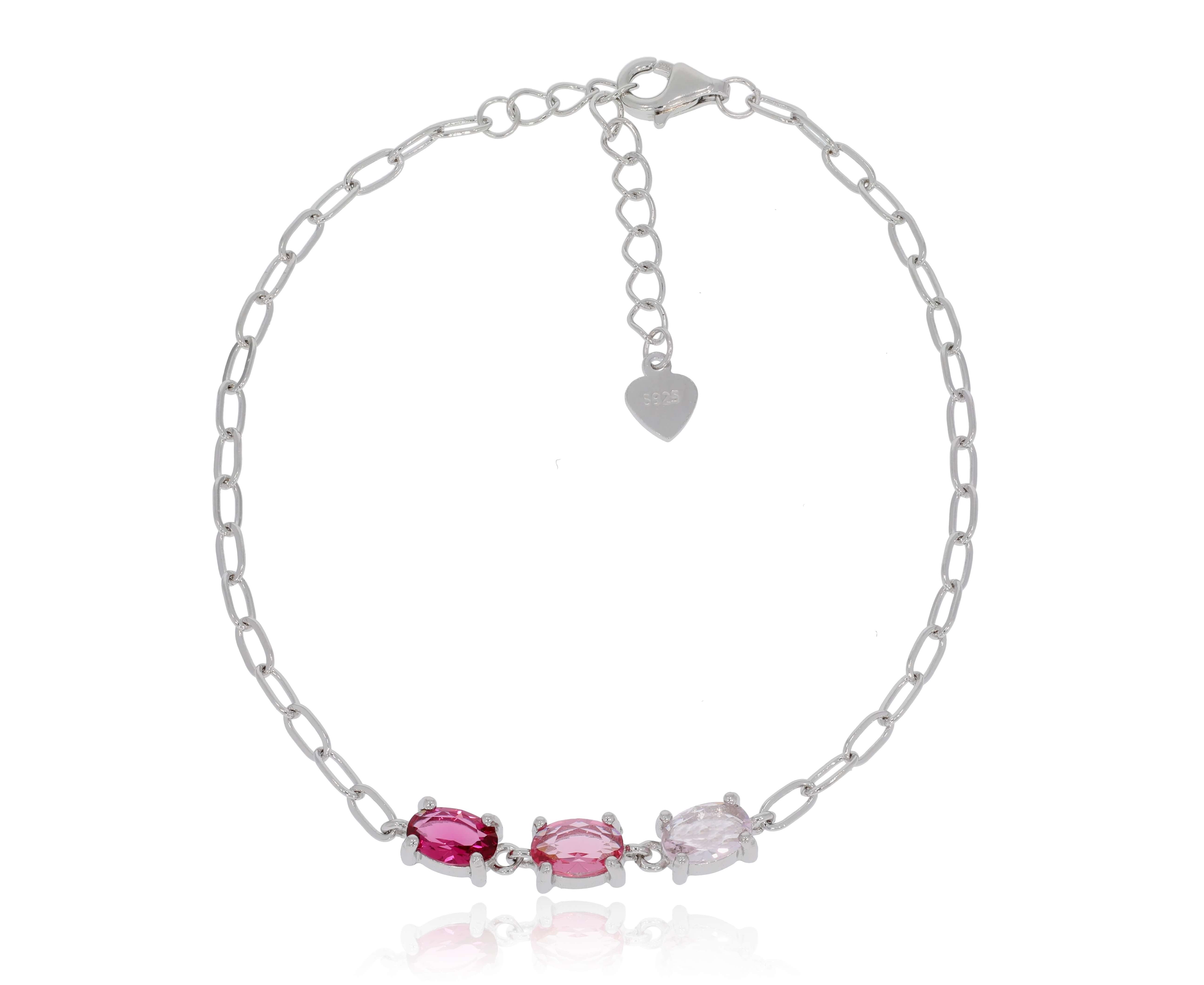 צמיד כסף 3 אבנים ורוד/ירוק