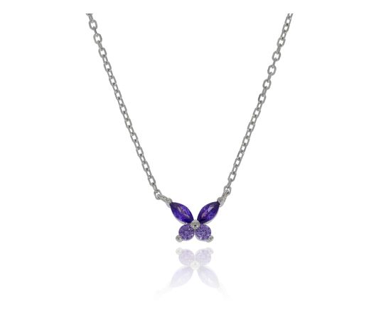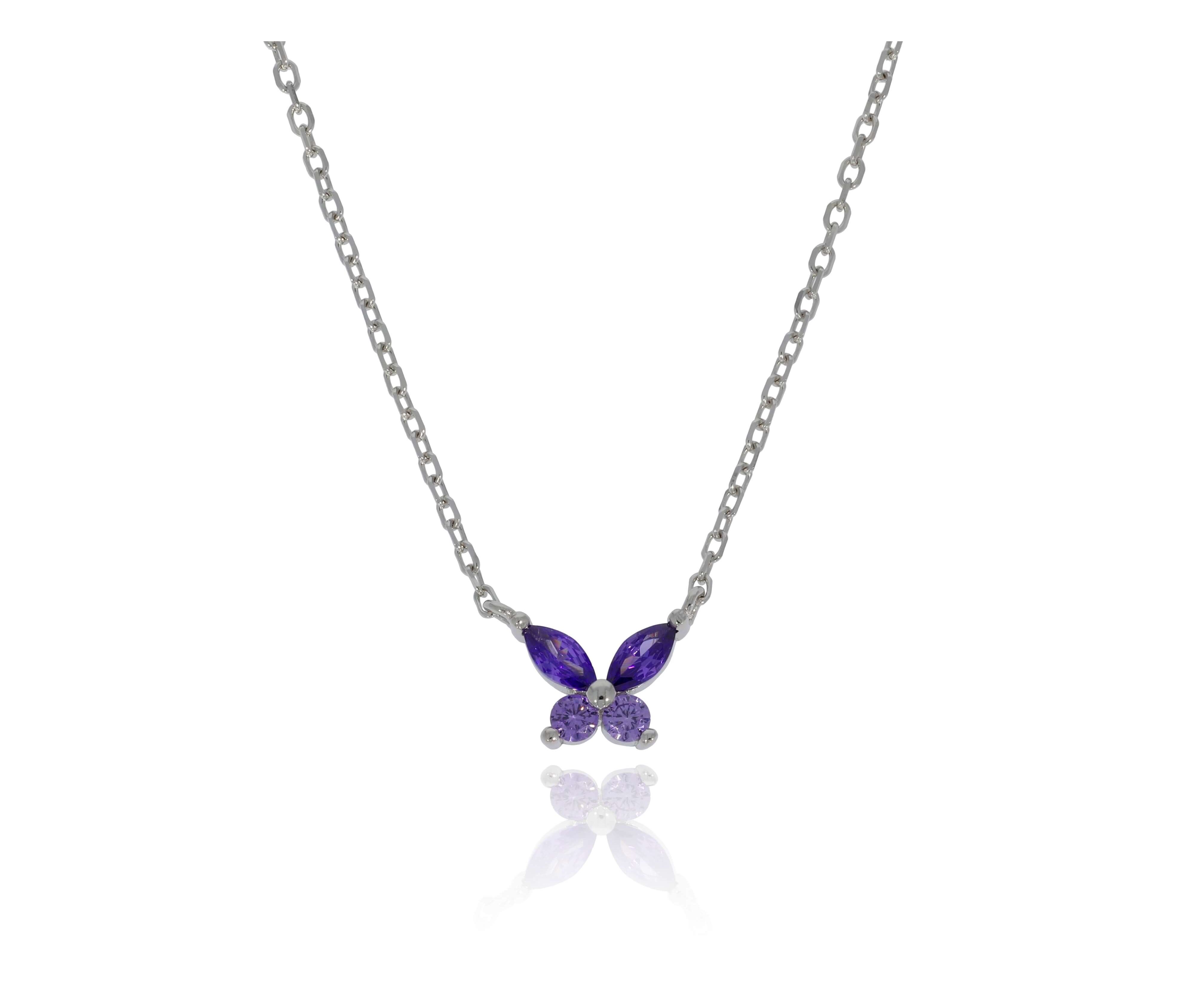 שרשרת כסף פרפר ירוק/סגול