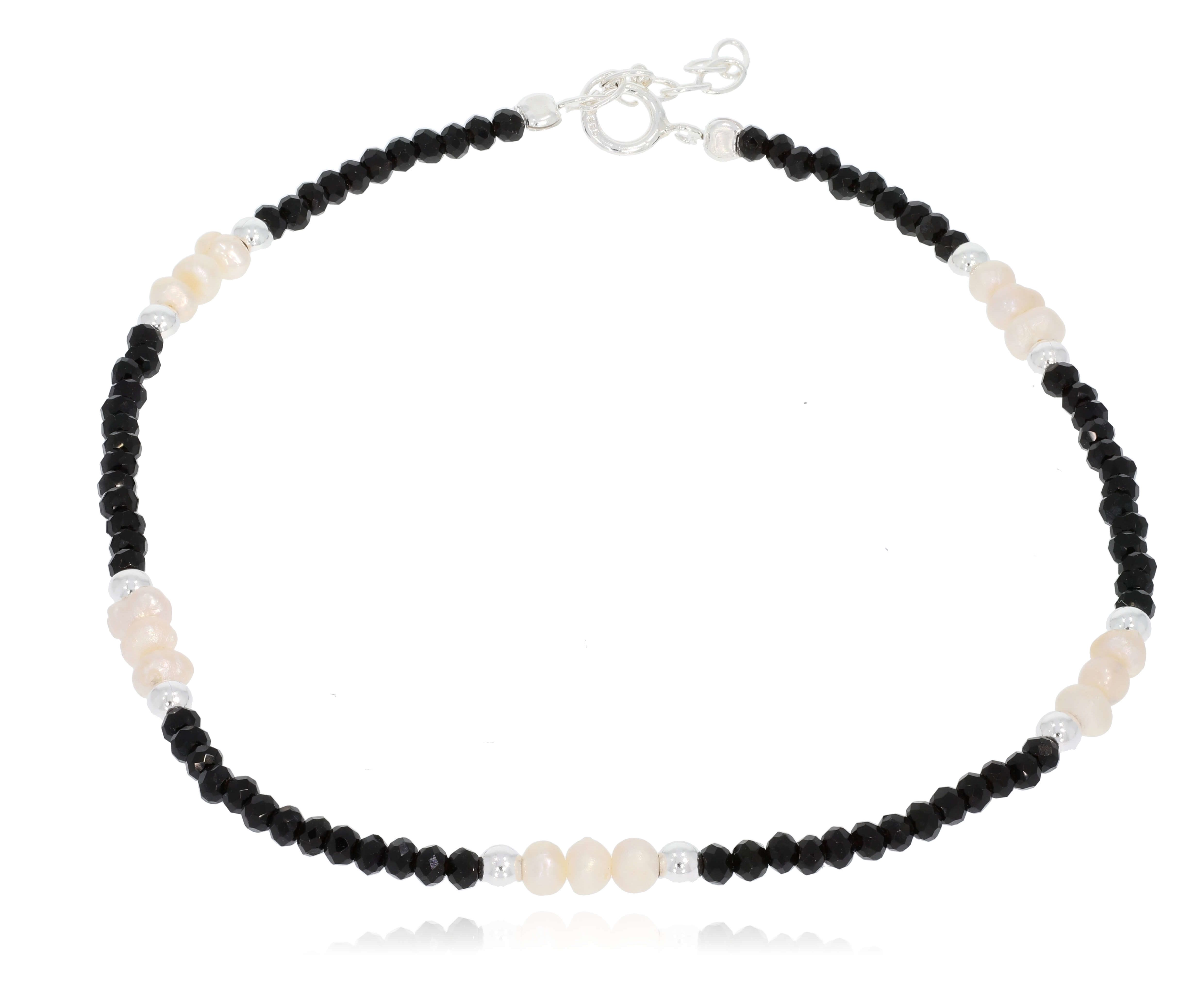צמיד רגל חרוזים ופנינים + חרוזי כסף 925