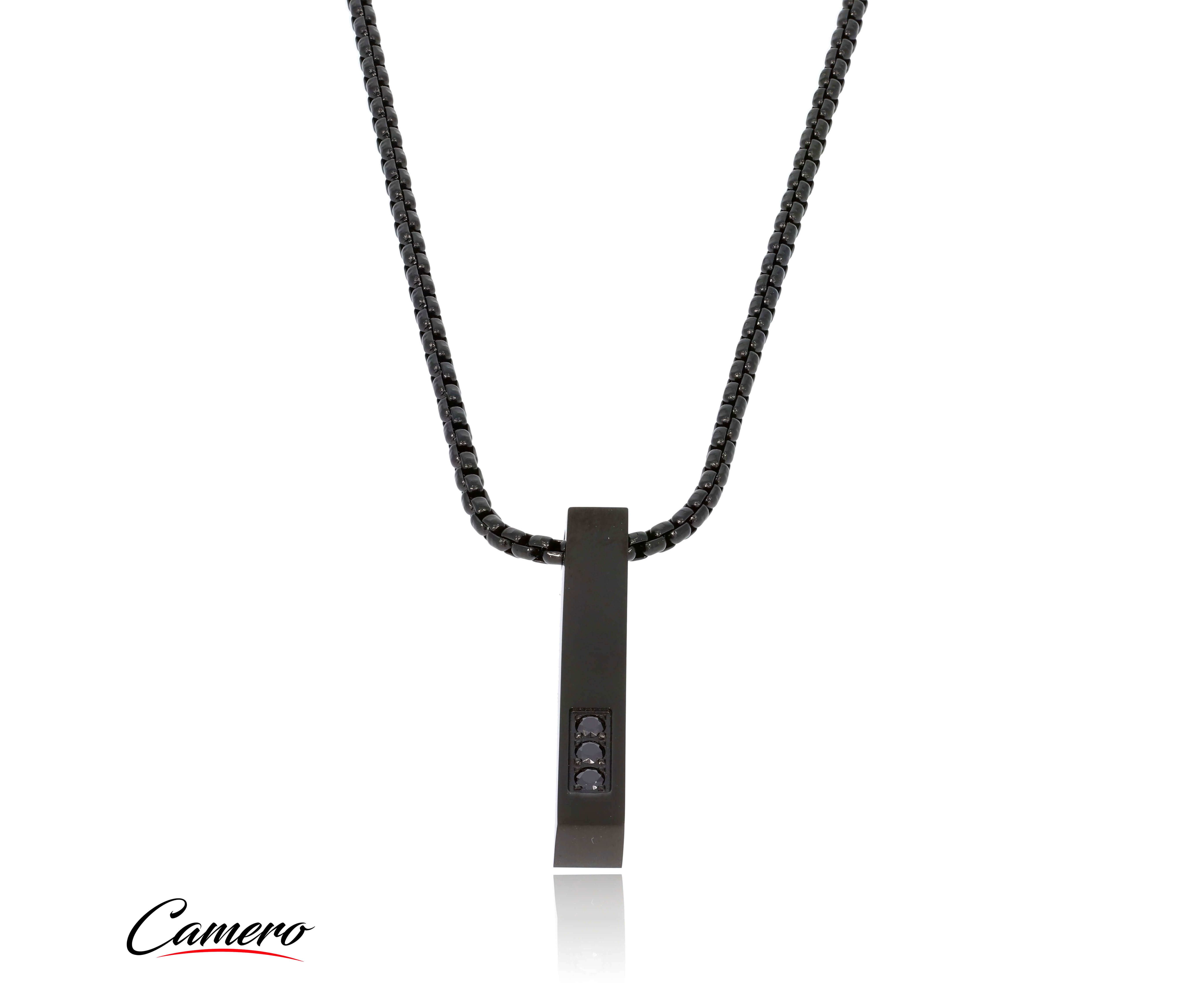 שרשרת סטיל פלטה שחורה + זירקונים CAMERO