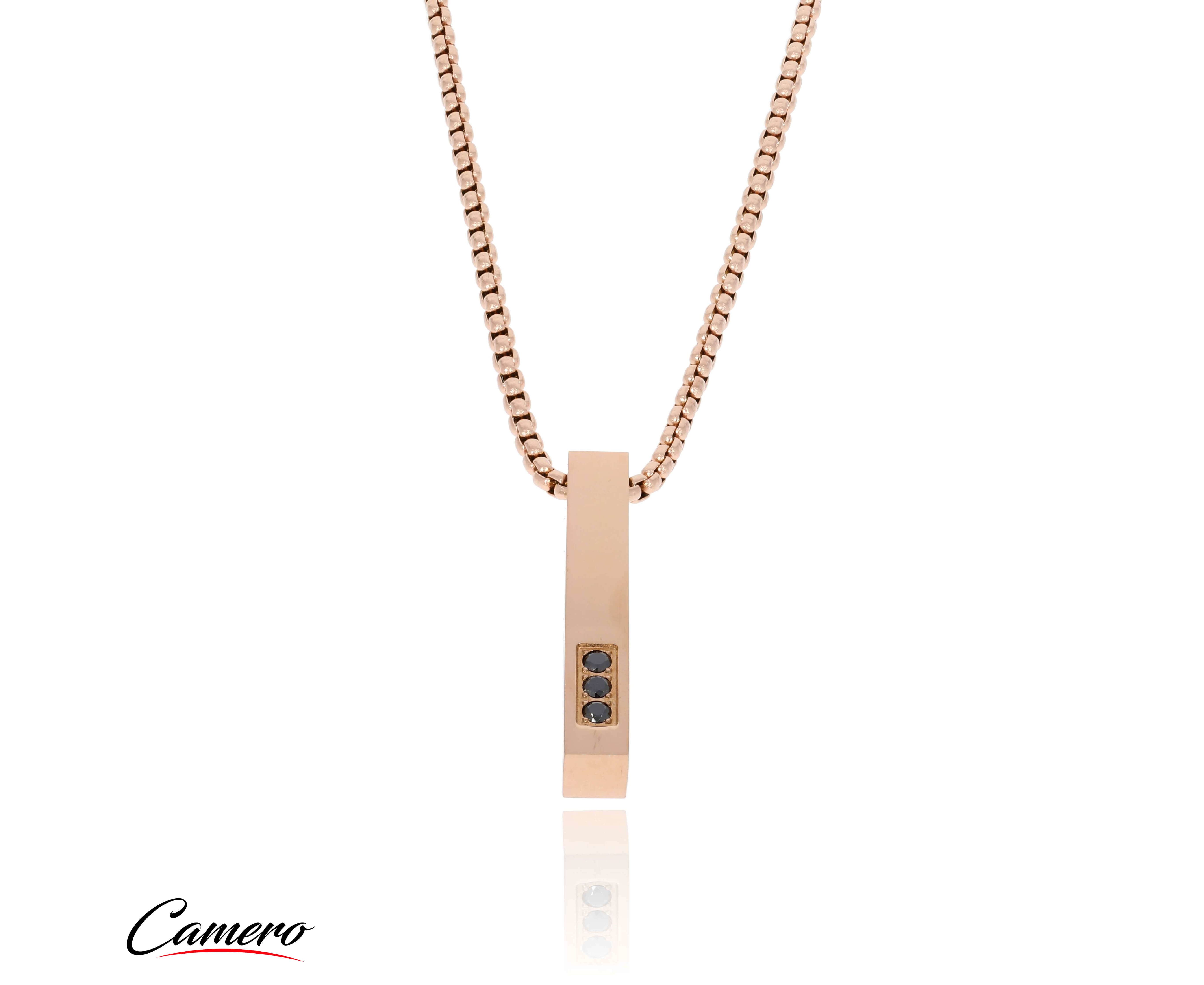 שרשרת סטיל פלטה בצבע רוז + זירקונים CAMERO