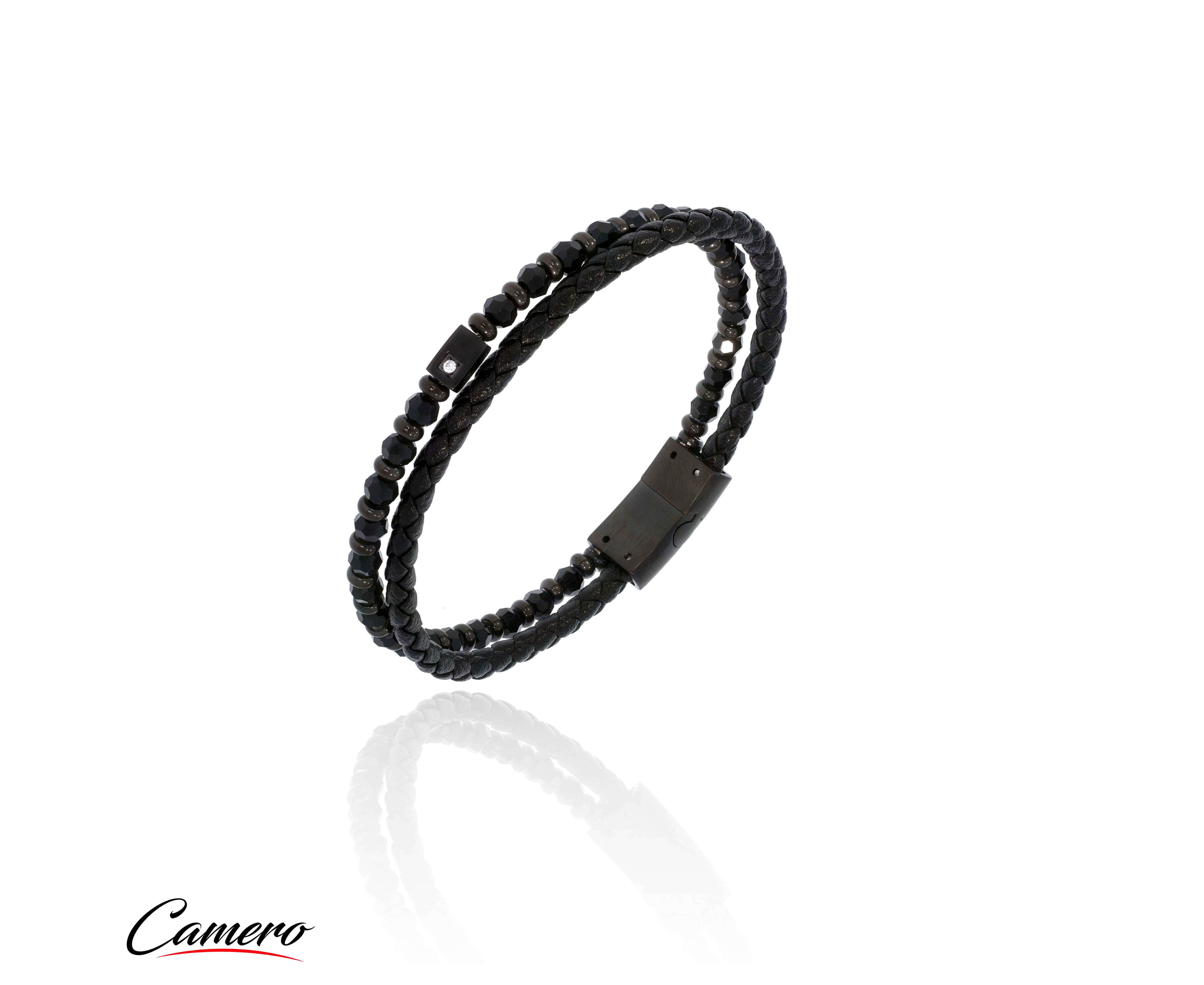 צמיד סטיל חרוזים משולב עור CAMERO