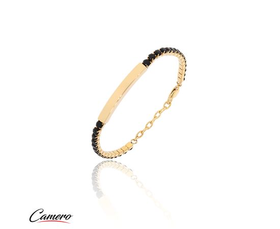 צמיד סטיל משובץ עם פלטה בצבע זהב CAMERO