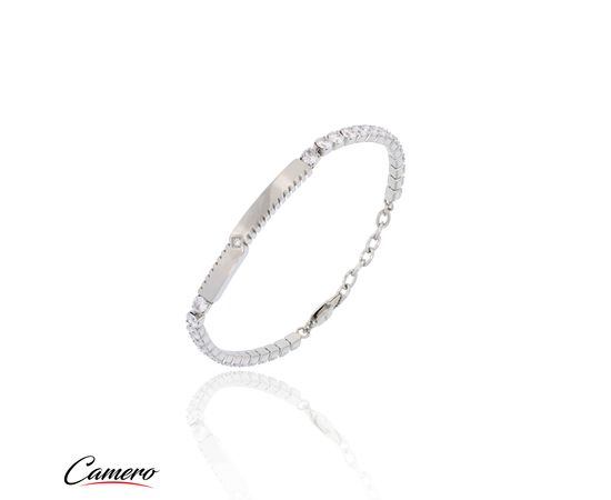 צמיד סטיל משובץ עם פלטה כסופה וזירקון CAMERO