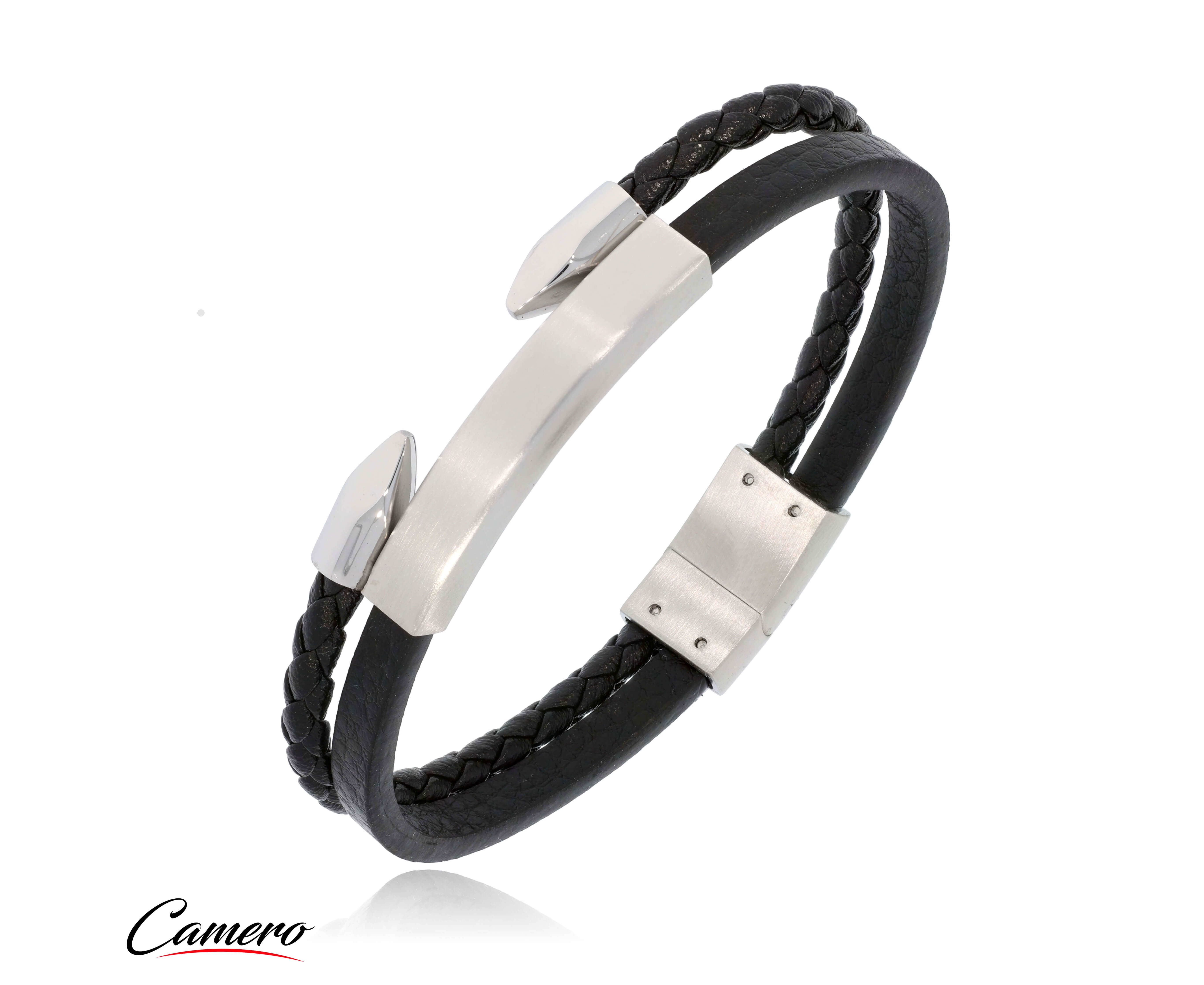 צמיד סטיל כסוף כפול משולב עור CAMERO