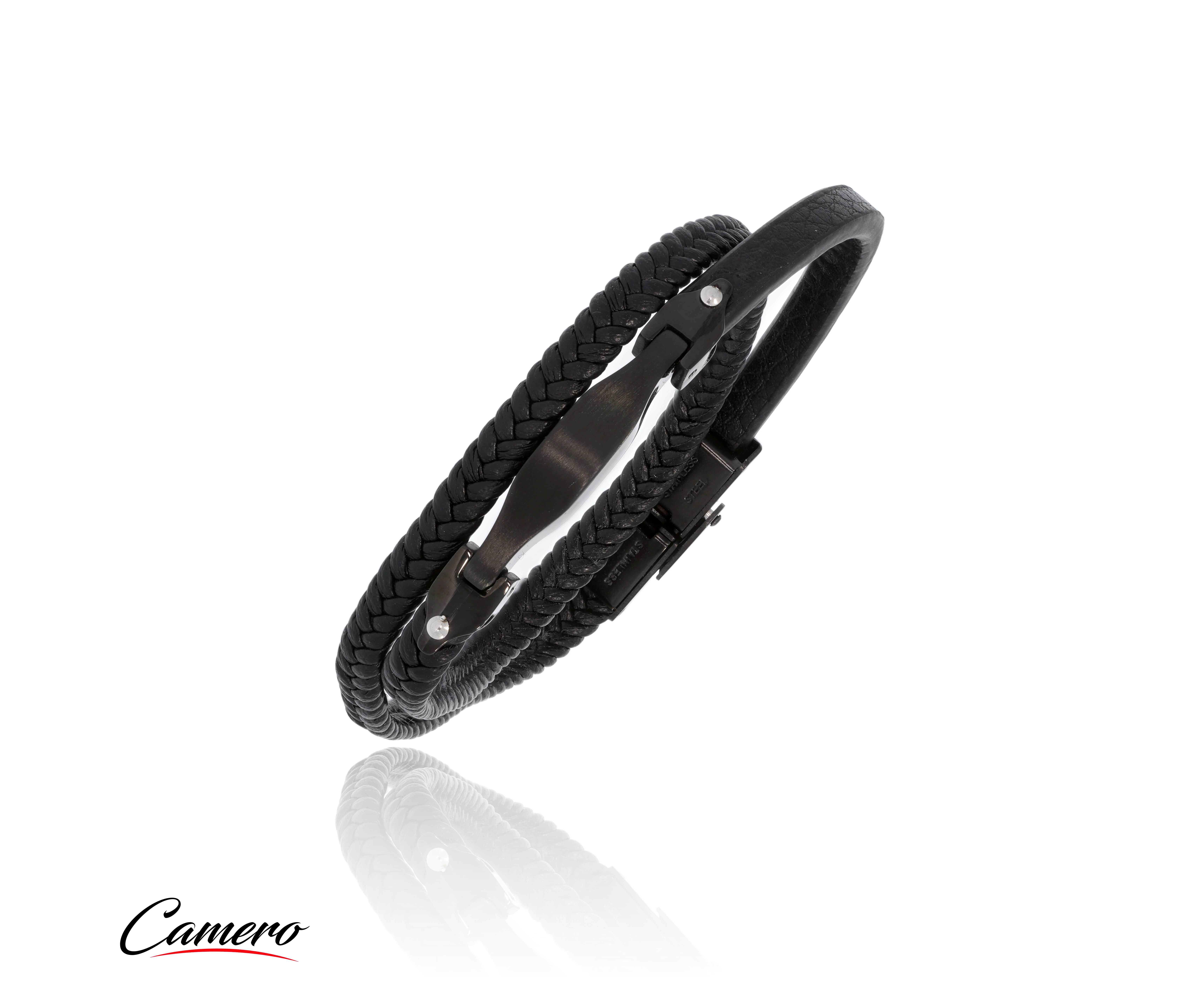 צמיד עור שחור CAMERO