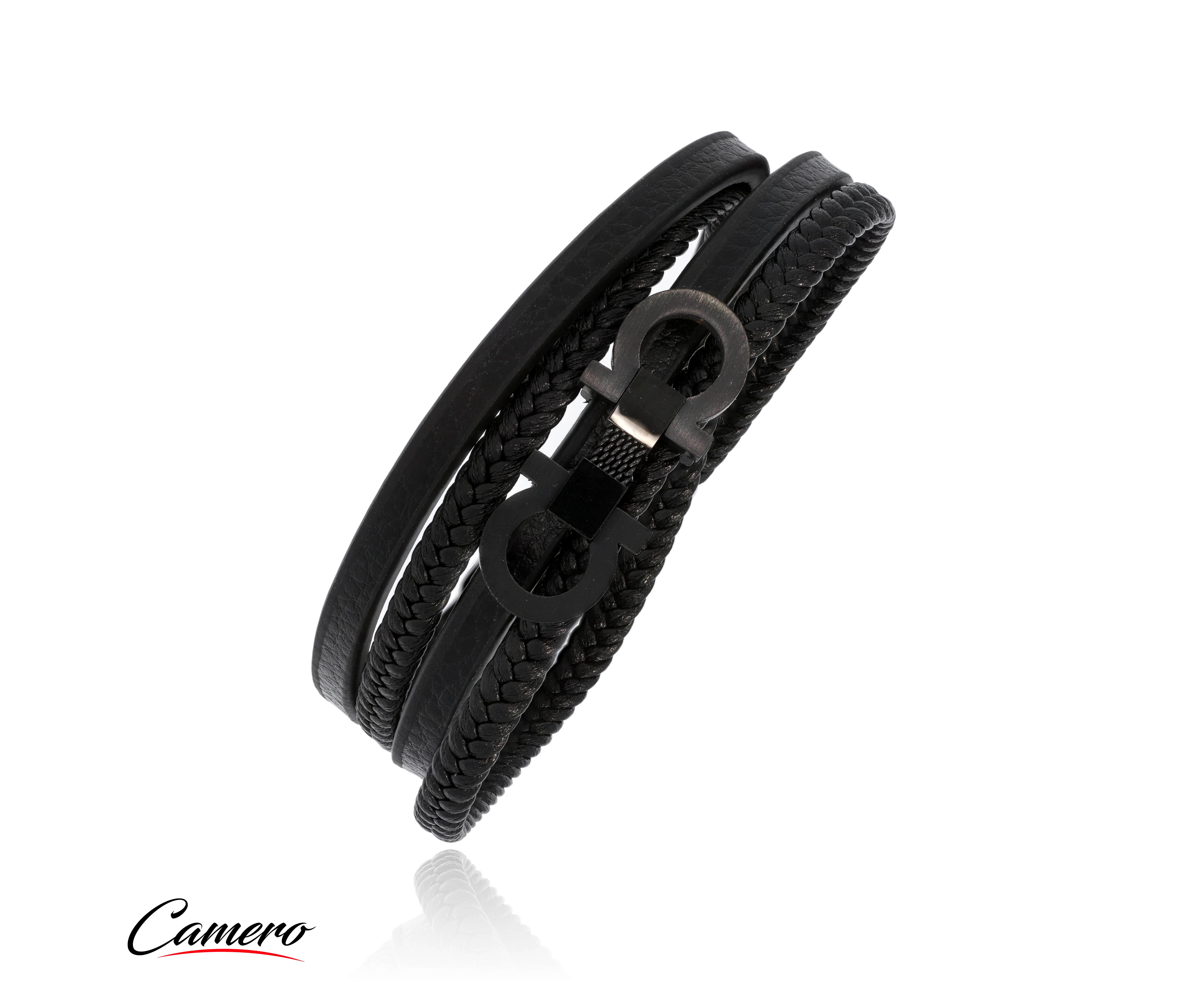 צמיד עור שחור CAMERO