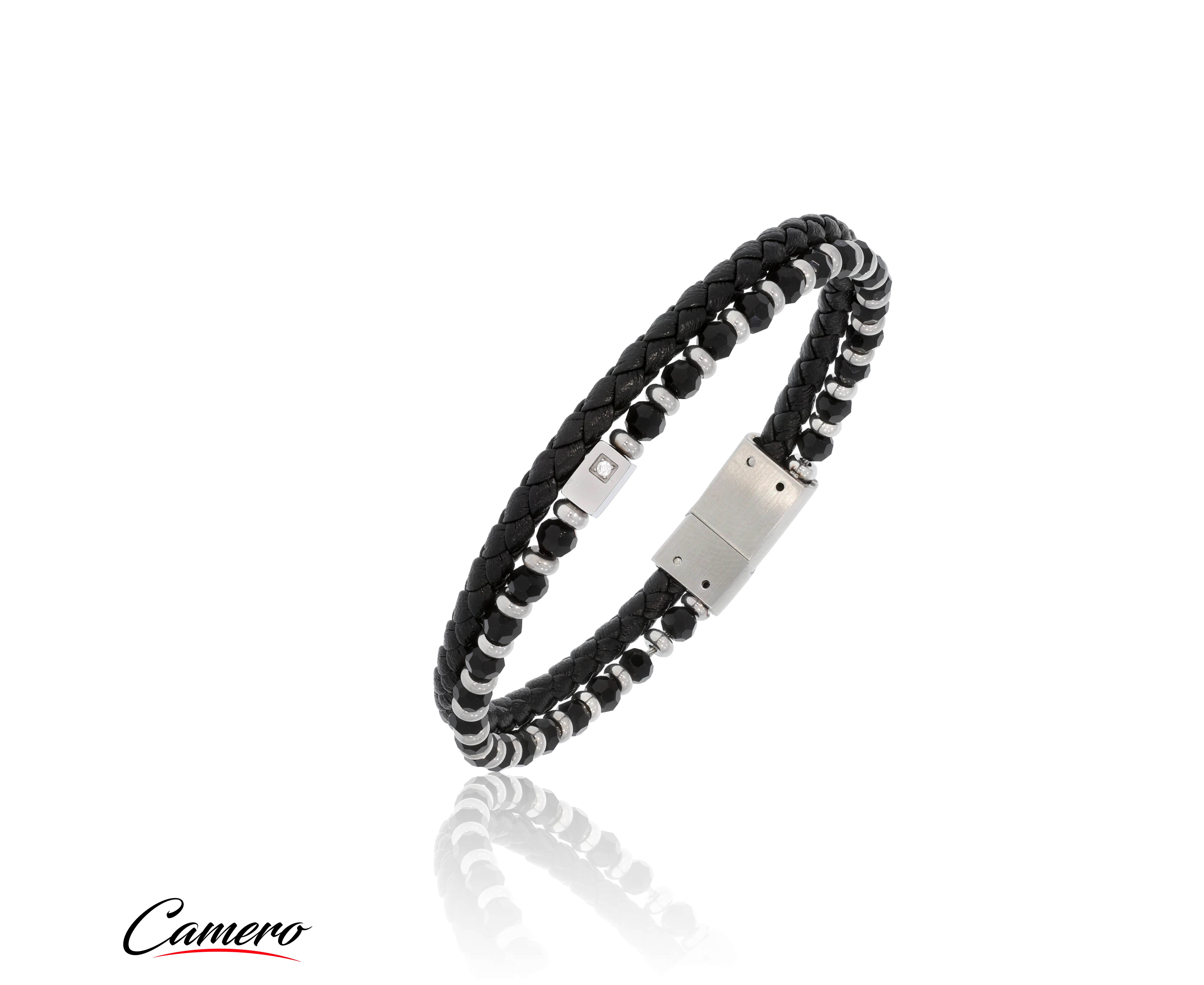 צמיד סטיל משולב עור CAMERO