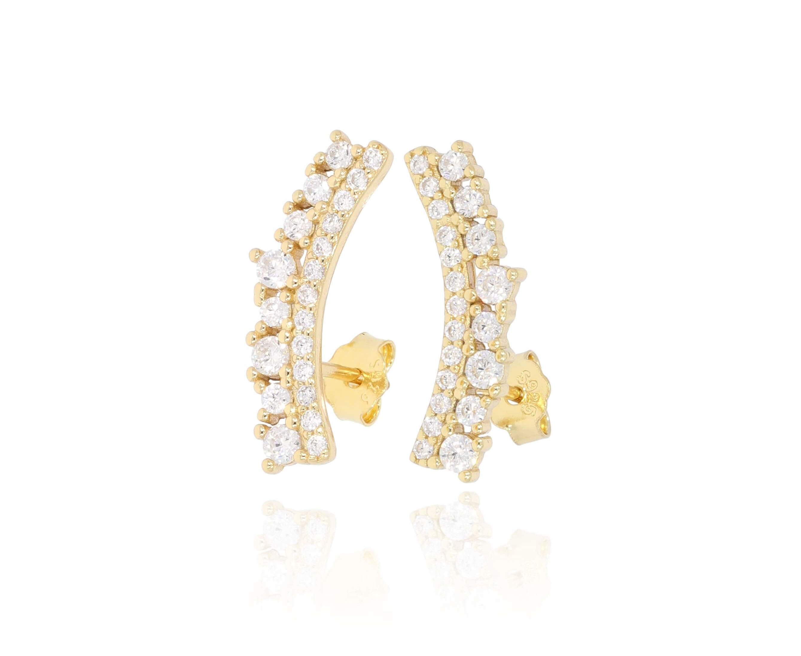 זוג עגילי כסף 925 מצפה זהב משובצים