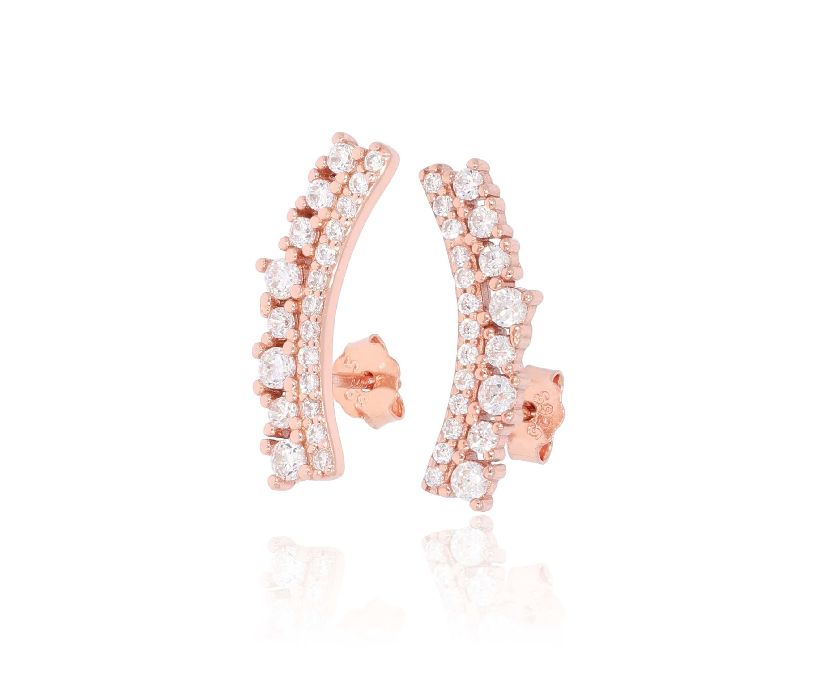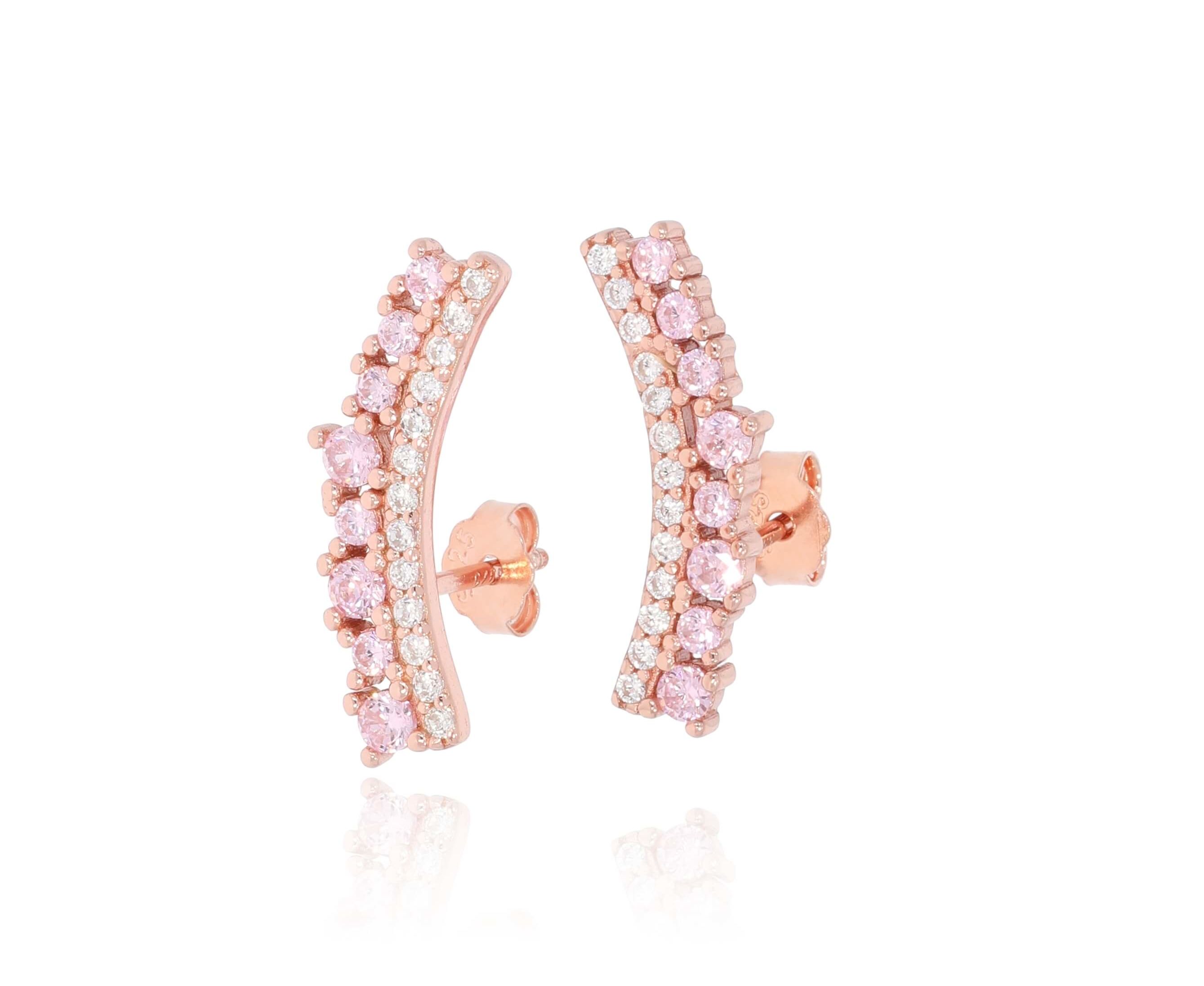 זוג עגילי כסף 925 מצופה רוז משובצים
