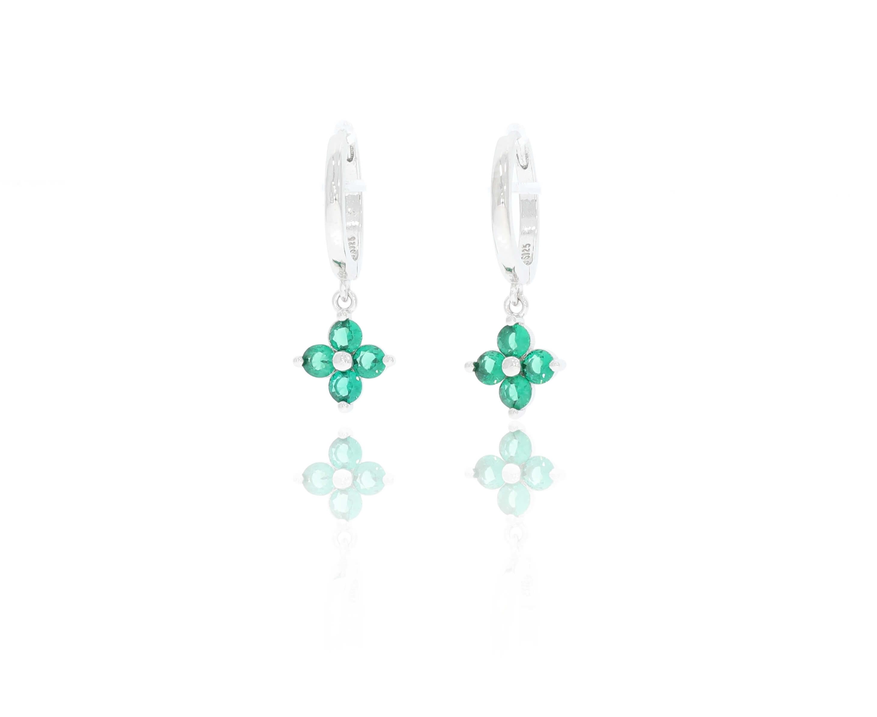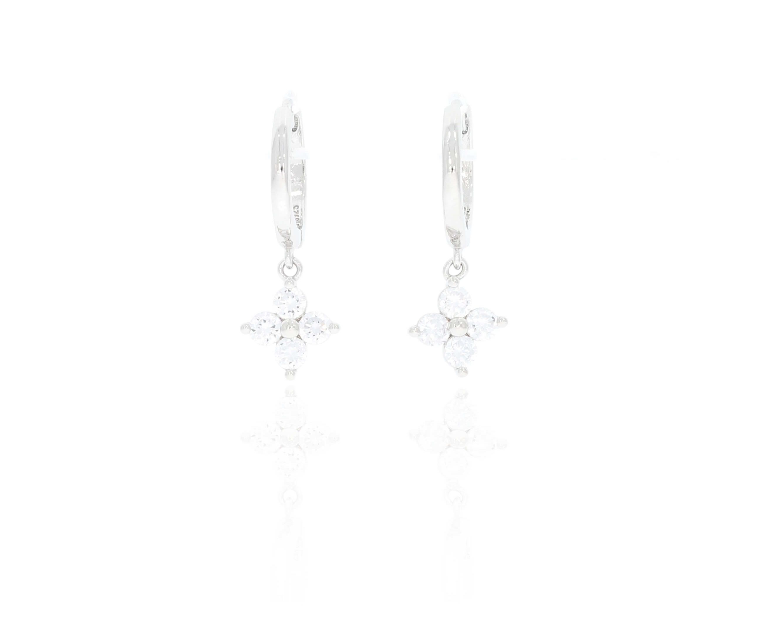זוג עגילי כסף 925 3 אבנים חישוק