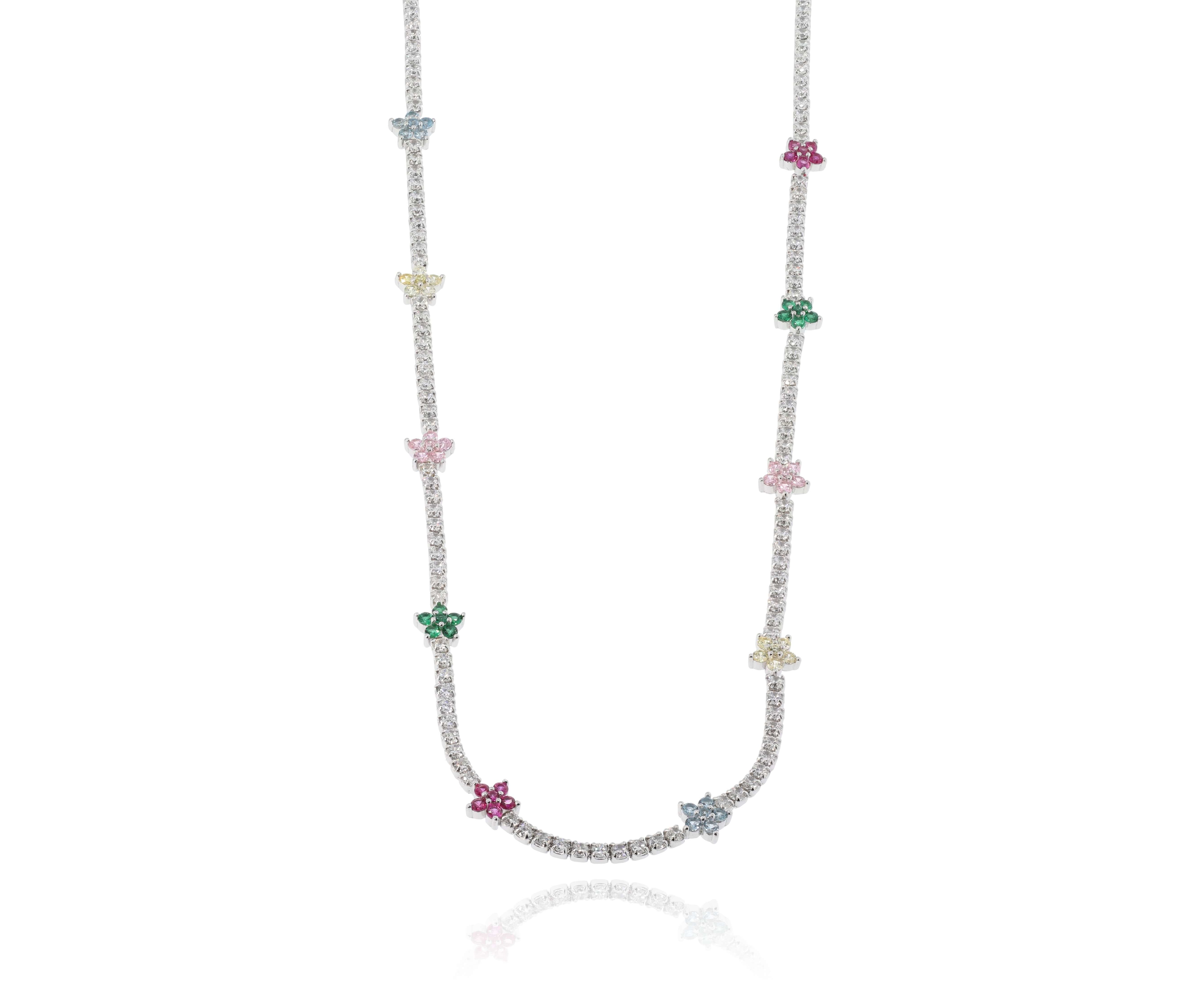 שרשרת כסף 925 פרחים צבעוני