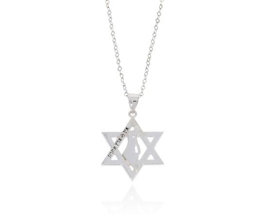 תליון כסף מגן דוד מפת ישראל ללא שרשרת